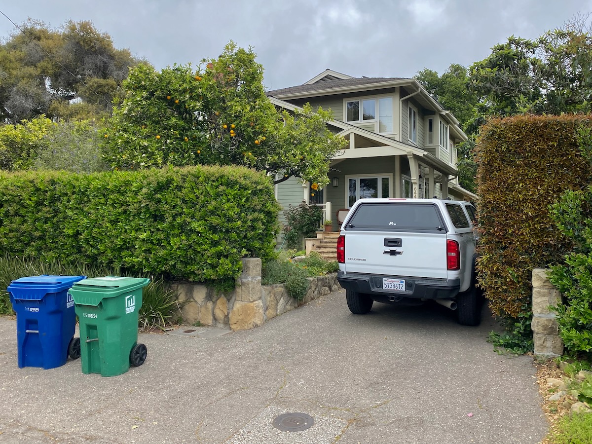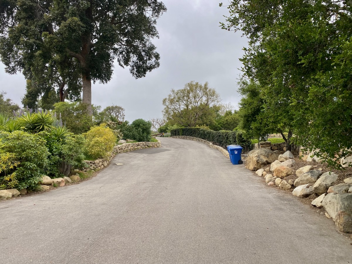 The streets between Lilac and Romero Canyon are markedly less fancy, with houses that are pleasant and others that made you wonder whether you’re still in Montecito. Below: Piedras Drive.
