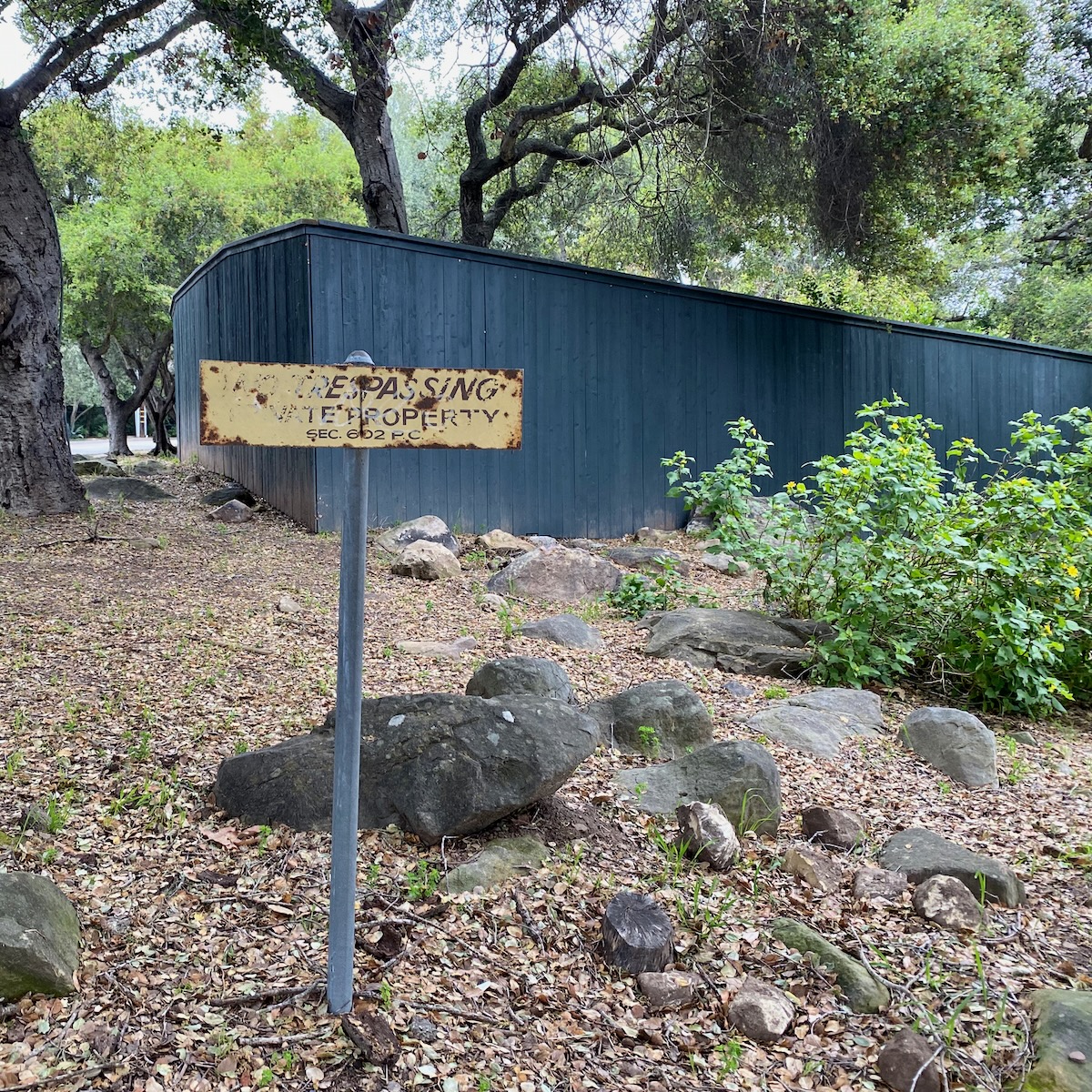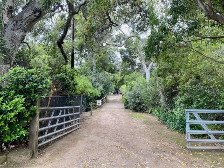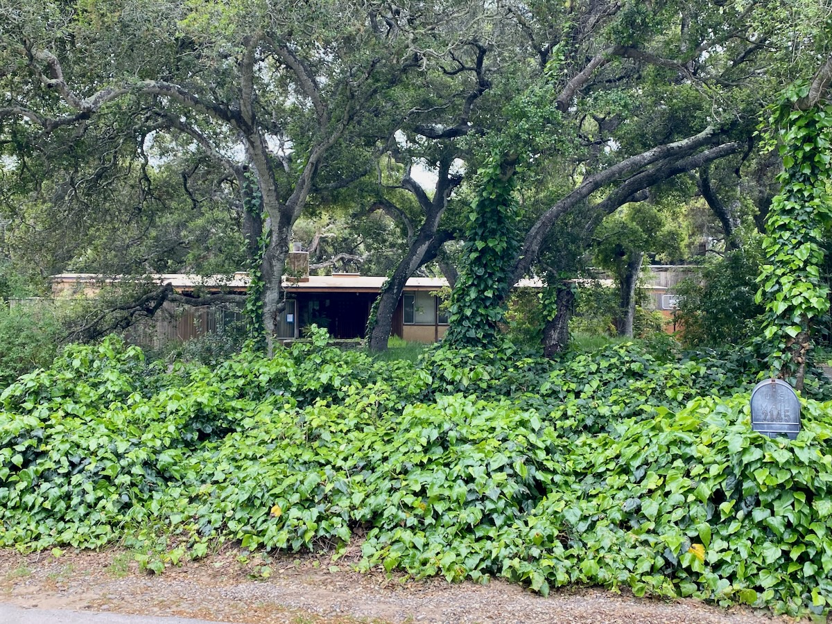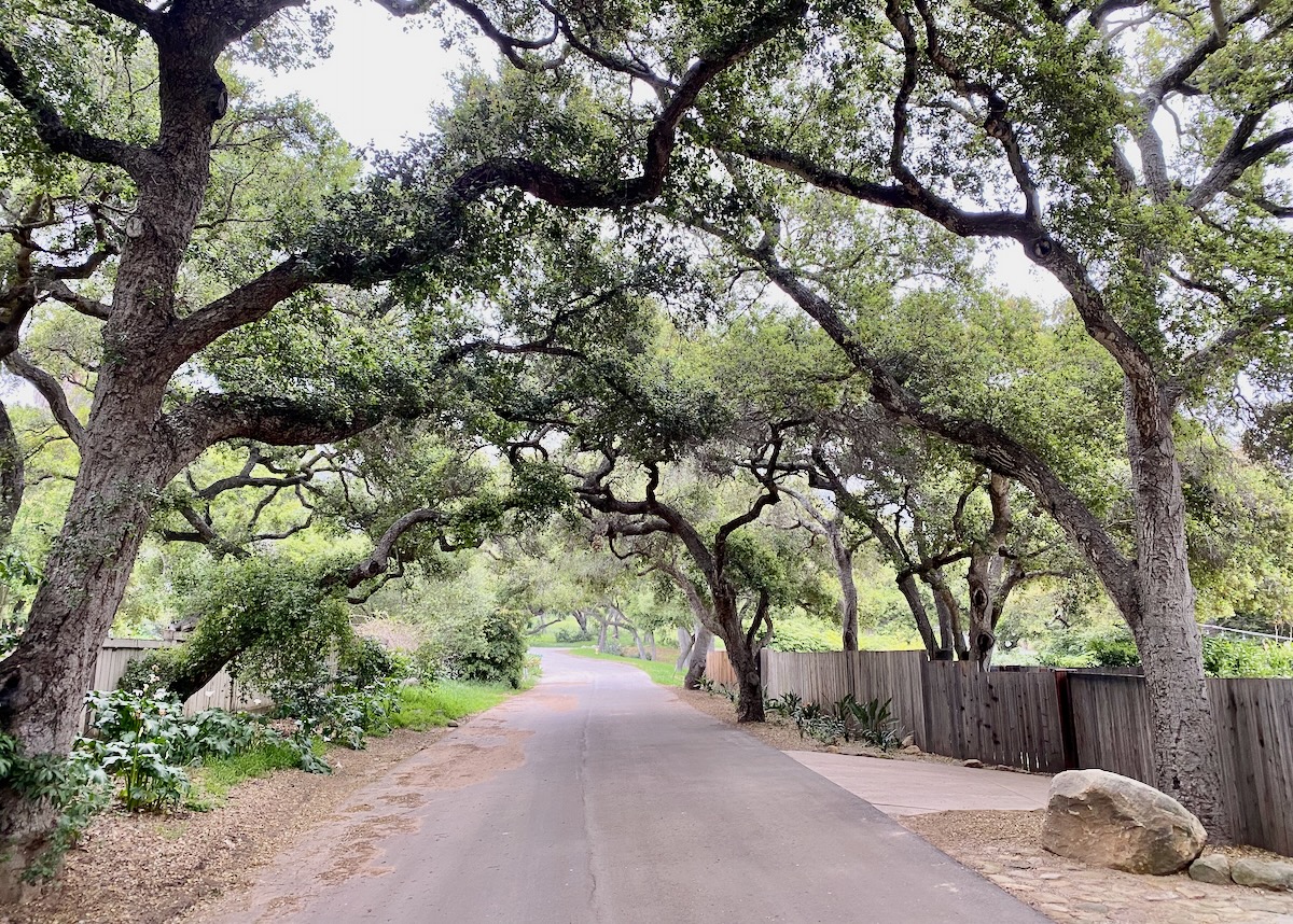 I try not to take these walks on gray days, because everything looks less nice in the photos, but my husband’s aunt, Tracey, was in town during one of the many rainy weekends we had in the past few months, and she needs to be walked. We decided to explore the part of Montecito bordered by Lilac Drive and Romero Canyon Road. (On the map, it looks a little like a silhouette of the top half of Grampa Simpson’s head.) The area is so oaky we wouldn’t miss blue skies too much.