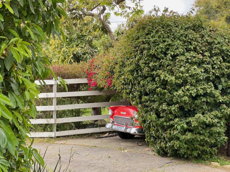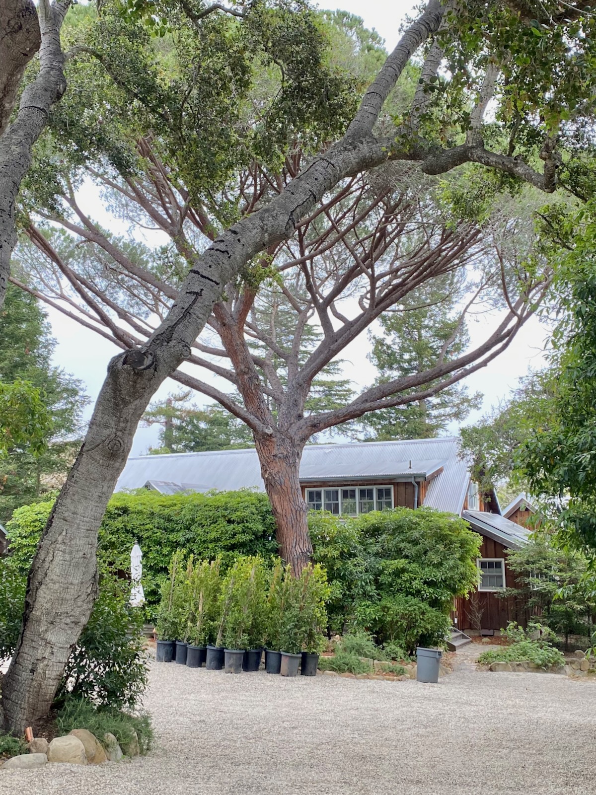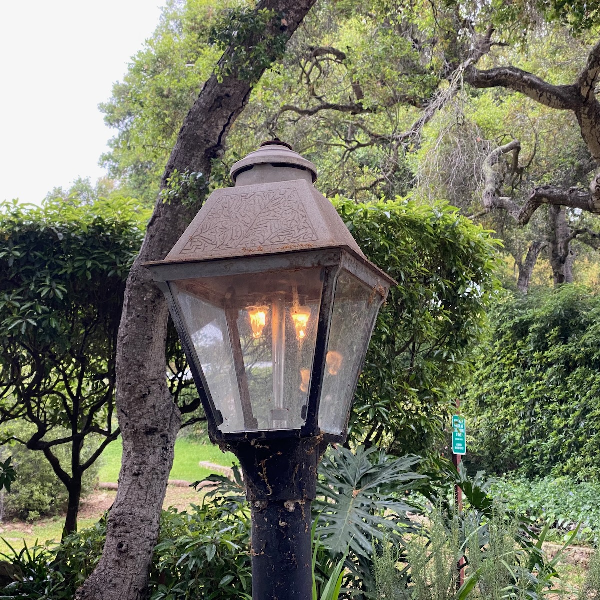 I try not to take these walks on gray days, because everything looks less nice in the photos, but my husband’s aunt, Tracey, was in town during one of the many rainy weekends we had in the past few months, and she needs to be walked. We decided to explore the part of Montecito bordered by Lilac Drive and Romero Canyon Road. (On the map, it looks a little like a silhouette of the top half of Grampa Simpson’s head.) The area is so oaky we wouldn’t miss blue skies too much.