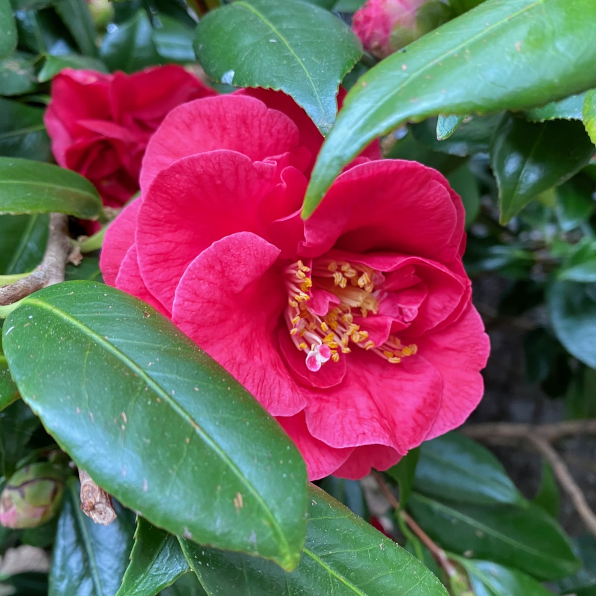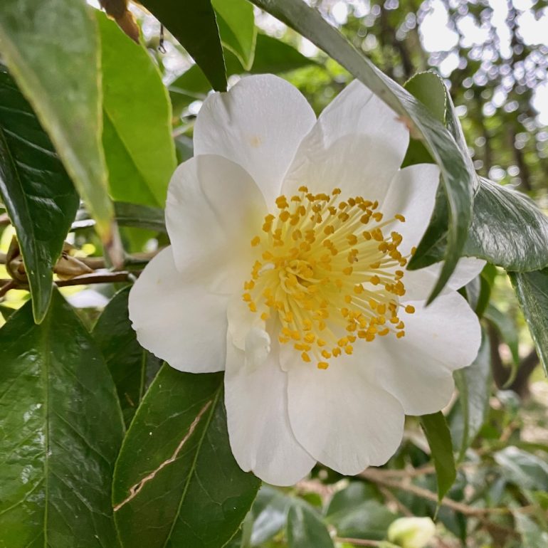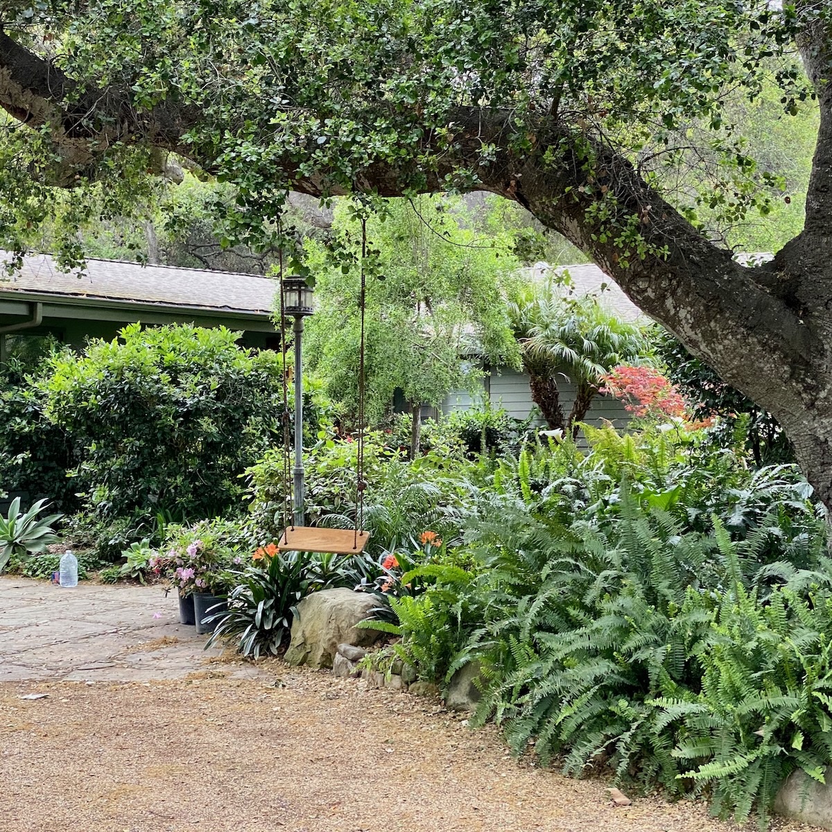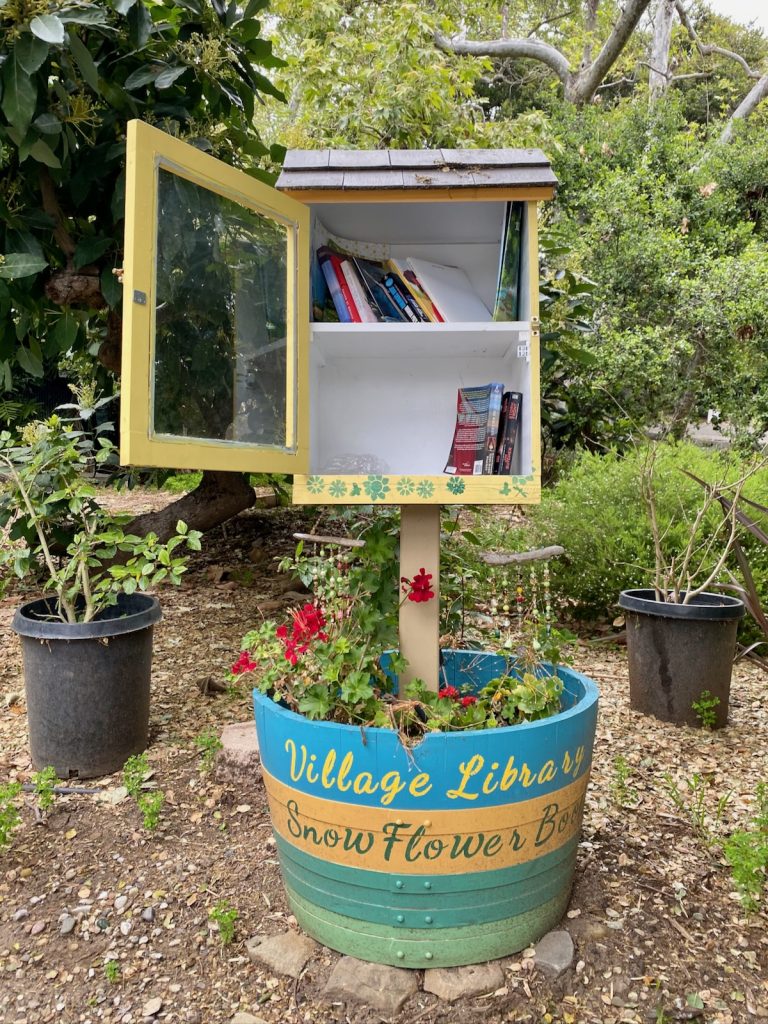 Maybe it’s just because I have long legs, but this tree swing seems a bit fraught to me. Also worth noting: lovely camellias and another Little Free Library.