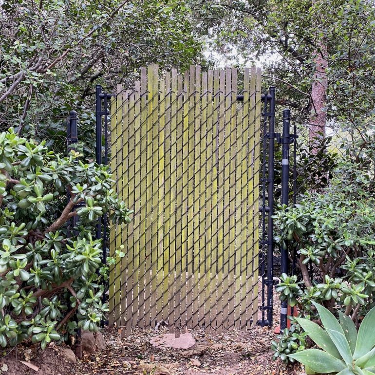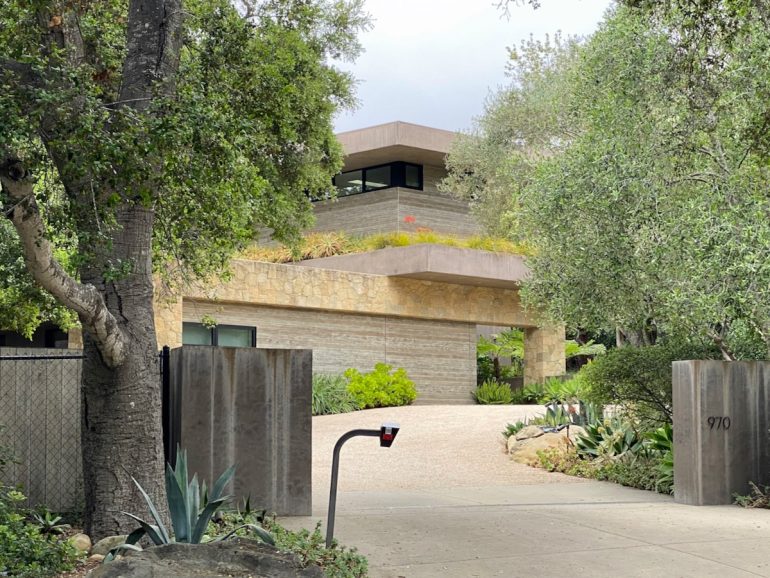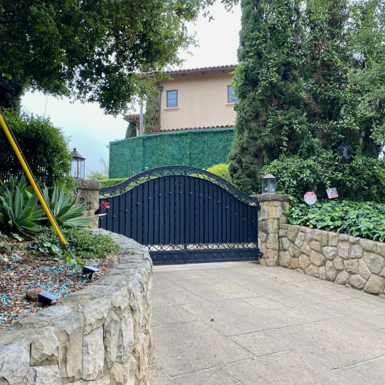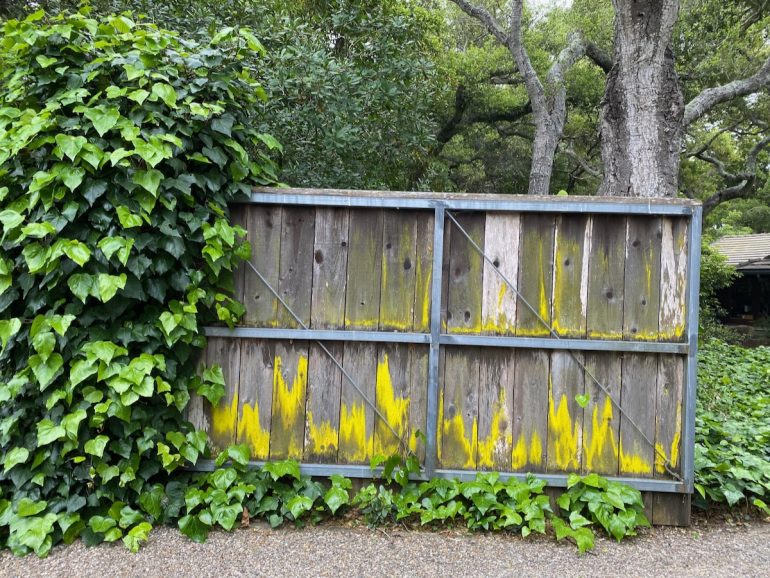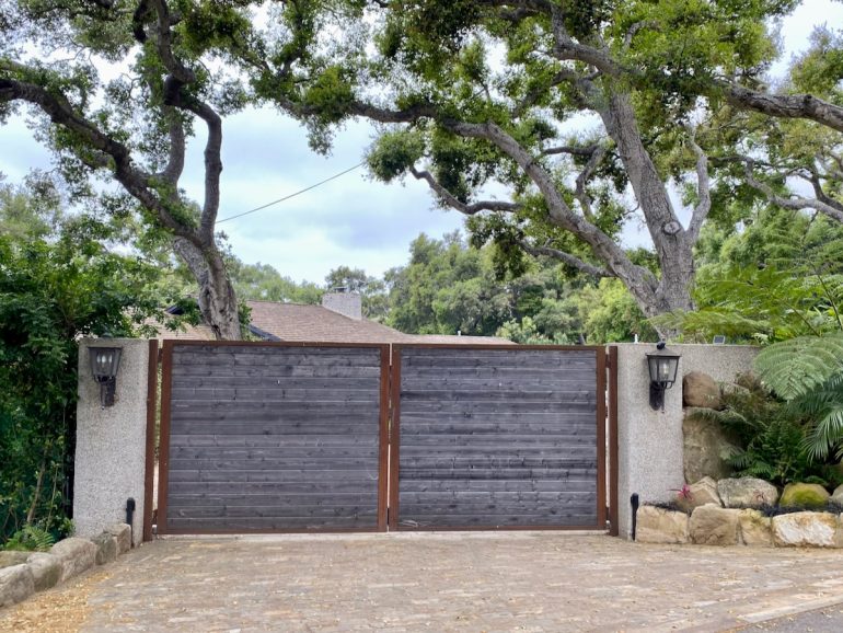 This stark one on Romero Canyon, however, is a little harder to love. There was a county notice posted about validating the as-built fence, which would certainly benefit from some non-ivy landscaping.