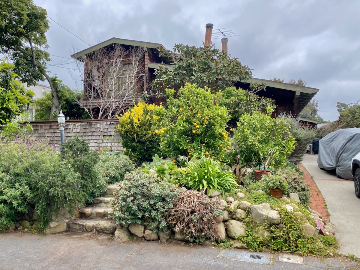 On our way home, I realized that we had skipped Tabor Lane and Orchard Avenue, the two little streets west of Romero Canyon Road, so I went back later that day on my own. They feel like a village, with small houses (in various styles) on small lots.