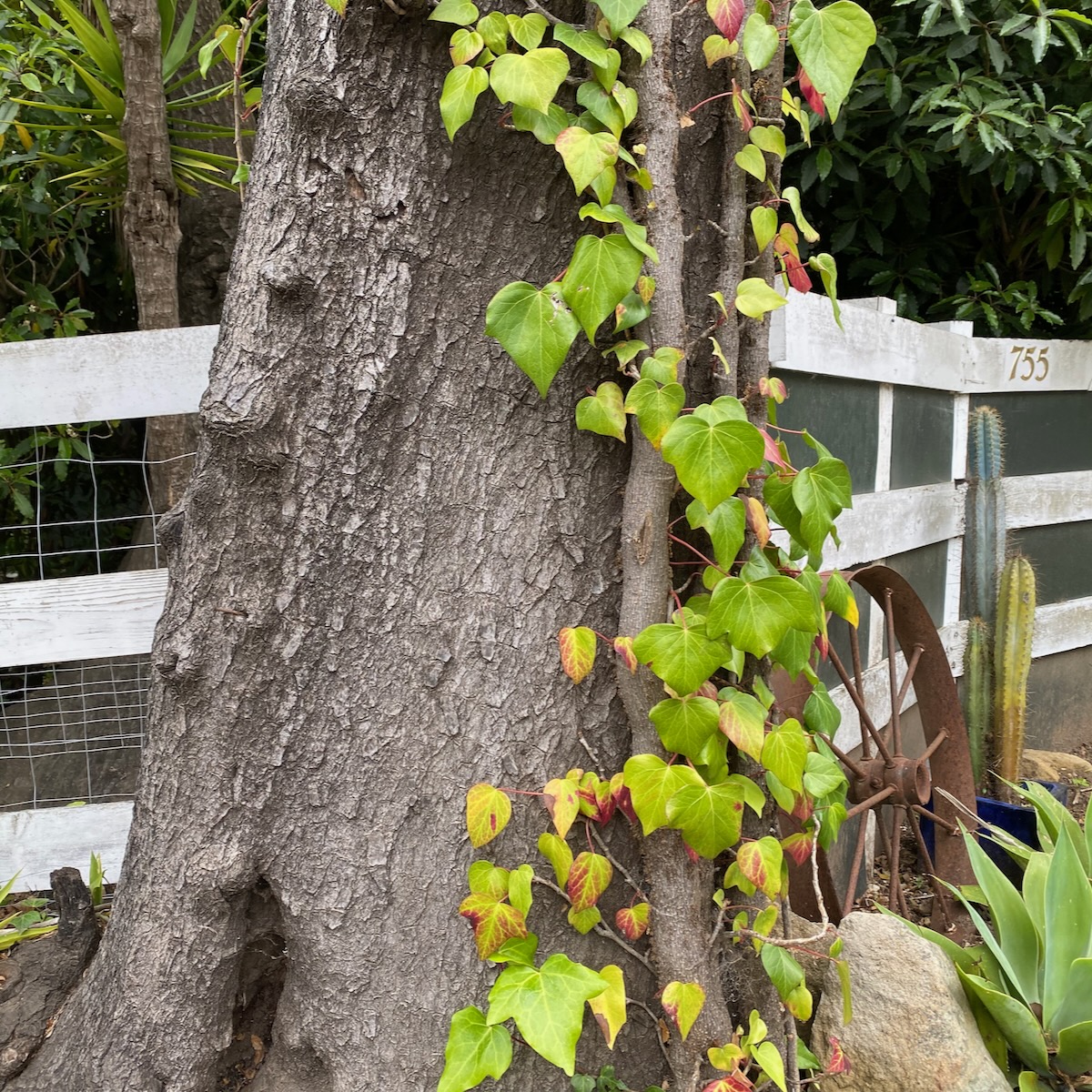 Back to plants. Tracey and I were traumatized by all the English ivy—I had deal with a lot of it at a house we once owned, and Tracey, as a Master Gardener, simply knows that it’s evil. Adam used to think I was being ridiculous when I’d complain about it, but now that we have neighbors who are planting ivy (!) across the street from their house (!!) along a ravine (!!!), he has begun to see the light. English ivy is so invasive that Oregon banned the transport, sale, or propagation of it in 2010, and the California Department of Fish and Wildlife had this to say: