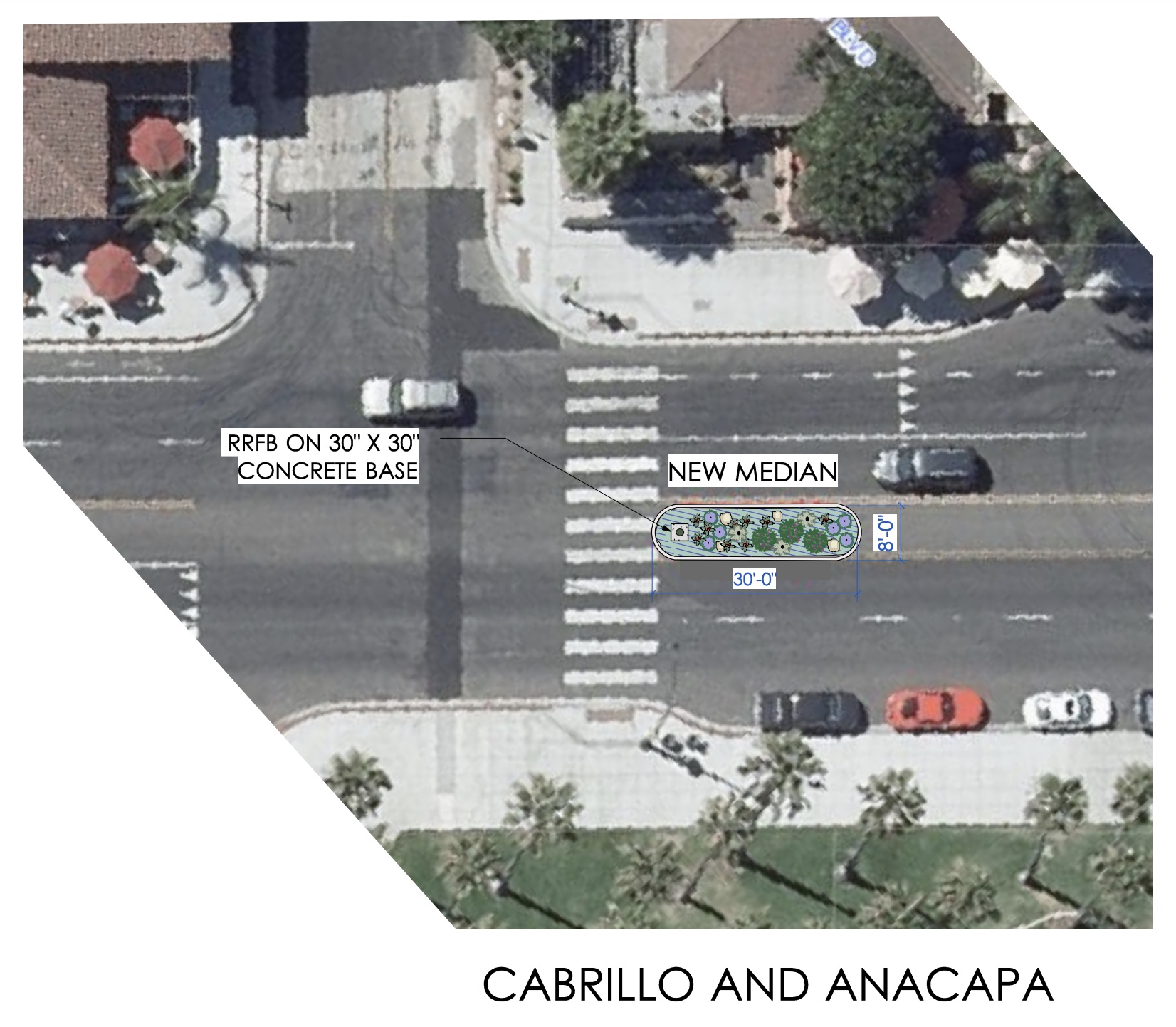 ••• According to the consent agenda for the September 27 meeting of the Historic Landmarks Commission, improvements are coming to Cabrillo Boulevard: “Proposal to install new landscaped median with Rectangular Rapid Flash Beacon at Cabrillo Boulevard/Anacapa Street crosswalk and to add new landscaping to existing medians at Cabrillo Boulevard/Chapala Street and Cabrillo Boulevard/Bath Street.”
