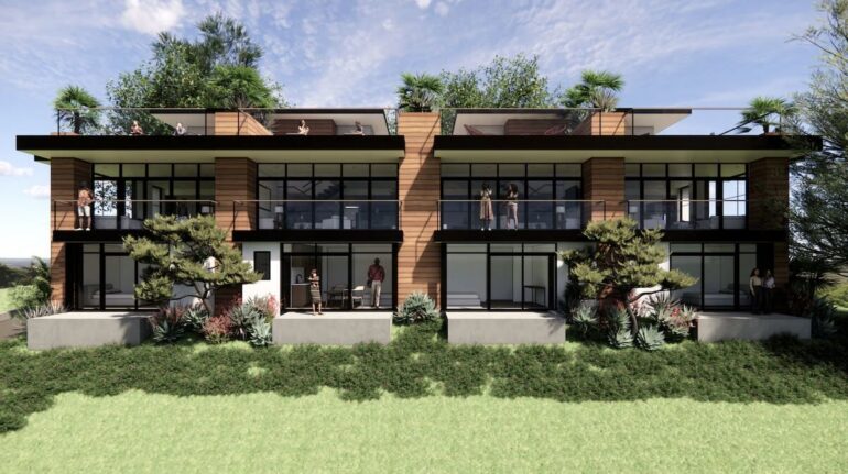 ••• Tomorrow’s meeting of the city’s Architectural Board of Review includes a new two-story, five-unit residential building to replace the existing one at 34 Los Patos Way (behind the Magic Castle Cabaret building). The design is by Tom Ochsner and I think it would make for an exciting addition to the street.