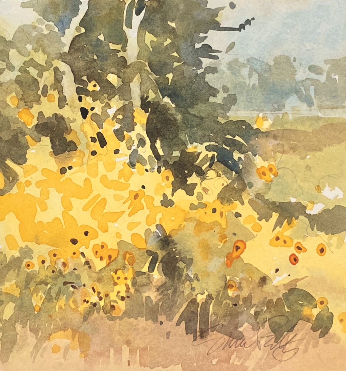 ••• Up now at Marcia Burtt Gallery: Field Studies, a group show about fields. Below: “Summer Meadow,” a very pretty watercolor by Susan Petty.