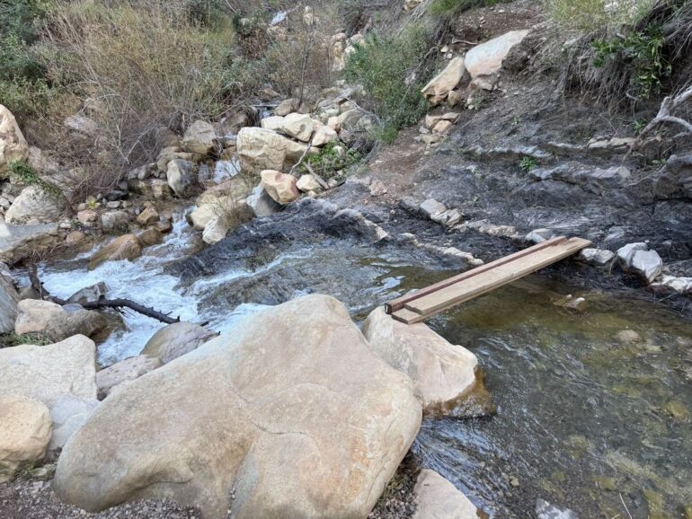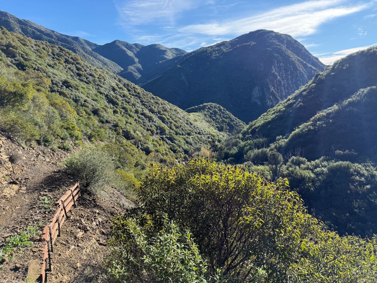 ••• Last week, I hiked all the way up San Ysidro Trail—something I’ve long wanted to do, but the trail only reopened (after repairs from storm damage) last fall. Highly recommended! I started out around 7:15 a.m. and was glad I did, as the upper half is exposed to the sun. (Bring water.) It took me 90 minutes to reach Camino Cielo, but I hauled ass, stopping only to take a few photos of the plank bridge so I could publicly thank whoever put it there, San Ysidro waterfall, and the scenery/view. At the top, you get the thrill of seeing the backcountry and, at least this time of year, a chance to take a shadow selfie showing off your impressive hands. Next on the list: a long walk on Camino Cielo…. P.S. A round of applause for the Montecito Trails Foundation‘s hard work keeping the trails in such great shape.