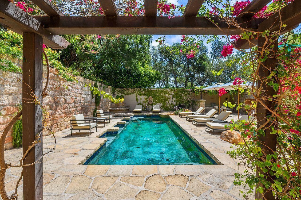 A private, charming residence on over three acres, 920 Hot Springs Road is located in a prime area of the Golden Quadrangle, on one of Montecito’s finest streets. Impeccably renovated, the home combines Mediterranean and modern styles, and it’s flooded with natural light from the many French doors. The versatile floor plan offers two or three bedrooms, living and dining areas, kitchen, sitting room, office, and three bathrooms. The superbly crafted outside entertaining area features a pool, hot tub, fireplace, and multiple trellises and seating areas, with a gorgeous stone wall as the backdrop. Additional amenities include a wine storage room, gated driveway, and two-car garage. Indoor-outdoor living simply doesn’t get better than this.