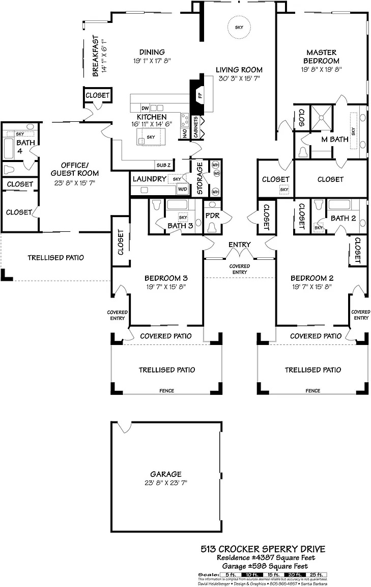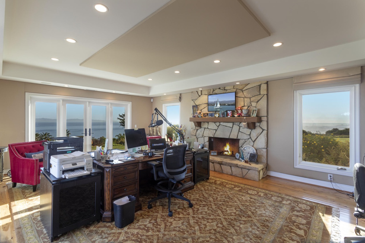 I can’t recall a house as suburban in style as 3201 Campanil Drive ($22.85 million) asking anywhere near $22.85 million, but the setting and views are certainly special, and maybe the idea of nine bedrooms is appealing. While the Campanil neighborhood can’t compare to Montecito in terms of cachet or charm—there’s a distinct whiff of Orange County—it does have ocean views without freeway noise. P.S. The microphone in the office is a clue to the owner’s profession.