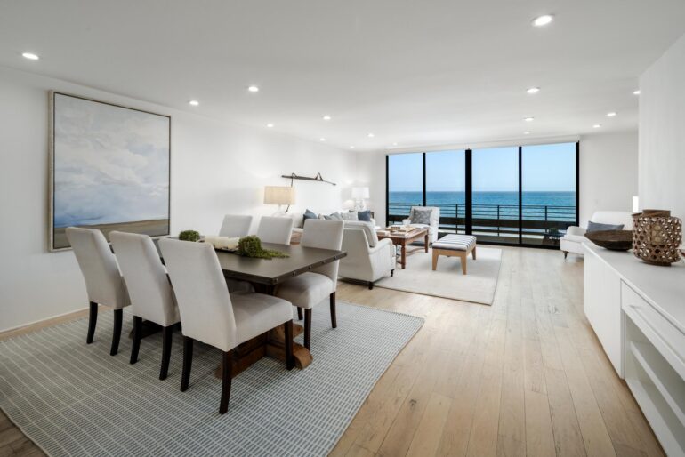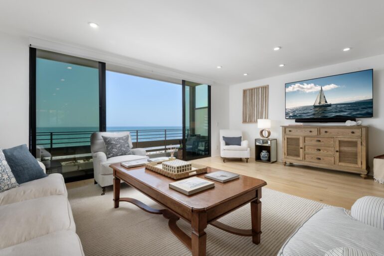 1385 Plaza Pacifica is a contemporary and luxurious oceanfront condominium seamlessly blending modern aesthetics with coastal charm. Its stunning design invites you to bask in natural light and panoramic ocean views framed by expansive windows. Boasting two bedrooms and two and a half baths, a lovely kitchen, and high-quality finishes throughout, this residence is a true showcase of elegance and sophistication. And this is one of Bonnymede’s few units to have a private garage. | Offered at $6,700,000.