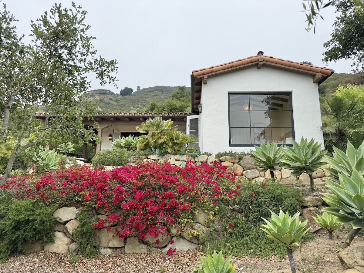 Designed by Chester Carjola and built in 1950, it’s the exception on Oak Creek Canyon—a gated, private lane above E. Mountain Drive—where the other homes date from the early 21st century. Plus: an idyllic two-bedroom guest house up the hill.