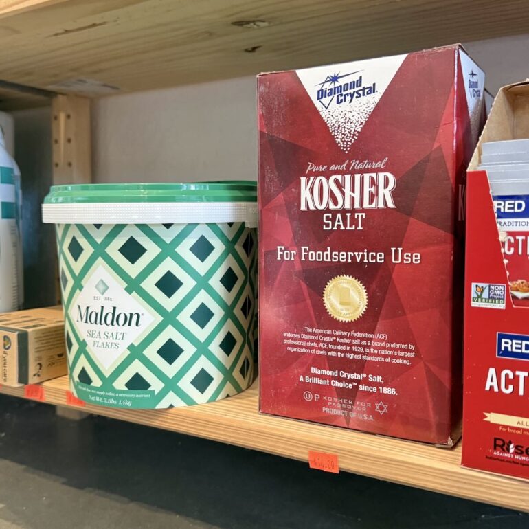 …and other like it salty ($45) and ($16). The bucket of Maldon makes a better gift, but I asked the shop to carry Diamond Crystal kosher salt, so I feel obliged to include it.