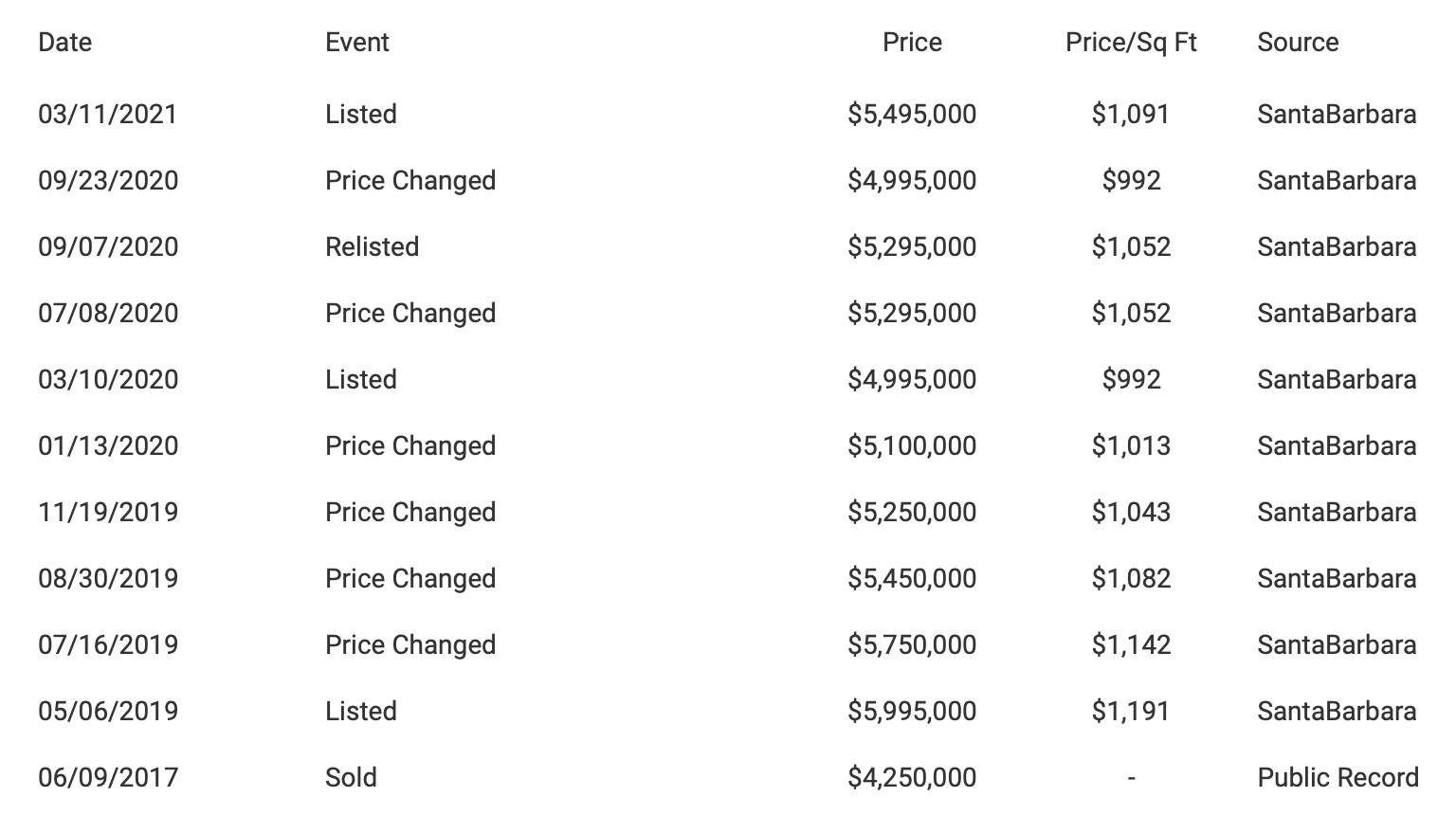••• The Zillow listing for the fascinating house at 117 Crestview Lane—it’s the one with the crenellated tower—says the property has been on the market for a few days, with no mention whatsoever that it actually came on in July 2019. The accurate price history from Realtor.com is pictured below. Always do your due diligence, folks.