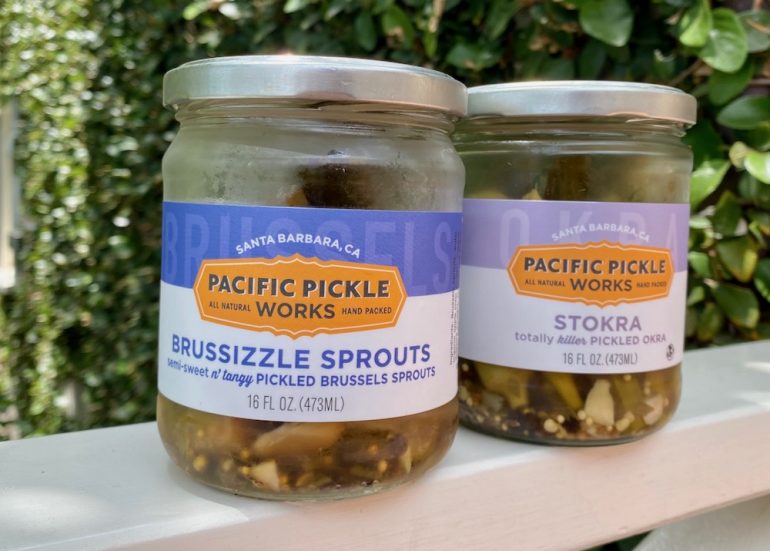 ••• We often have a ploughman’s lunch, and as much as I like it, I’m also trying to be a bit healthier. So I went to Whole Foods looking for interesting pickles (because if I eat more pickled vegetables, I’ll eat less cheese). All of the offerings from Santa Barbara’s own Pacific Pickle Works bragged how spicy they were, except for the Brussels sprouts, so I got those. I love them! And then I picked up the pickled okra at the Cheese Shop, and I love them, too! Next up: the asparagus spears.