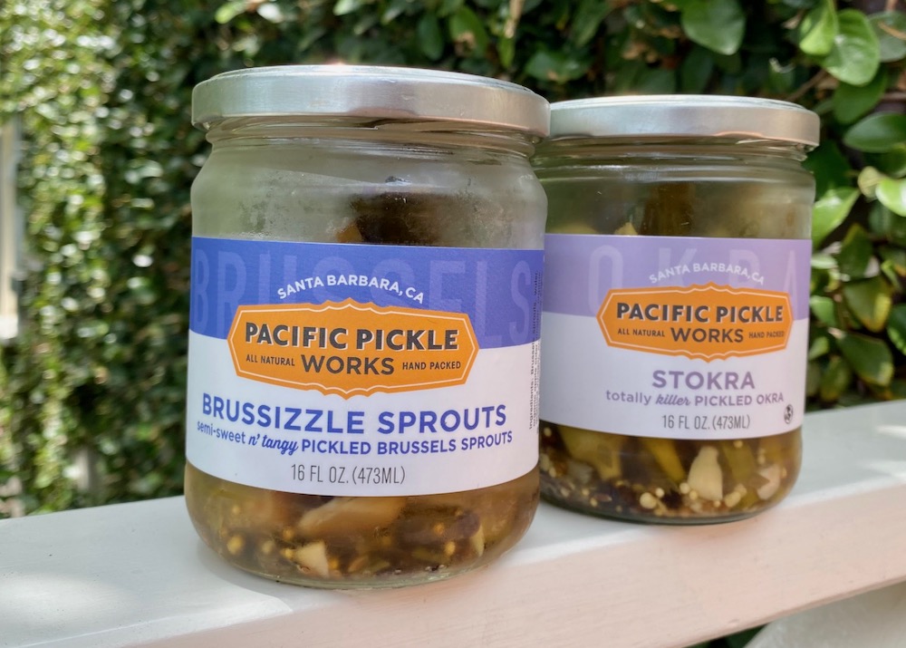 ••• We often have a ploughman’s lunch, and as much as I like it, I’m also trying to be a bit healthier. So I went to Whole Foods looking for interesting pickles (because if I eat more pickled vegetables, I’ll eat less cheese). All of the offerings from Santa Barbara’s own Pacific Pickle Works bragged how spicy they were, except for the Brussels sprouts, so I got those. I love them! And then I picked up the pickled okra at the Cheese Shop, and I love them, too! Next up: the asparagus spears.