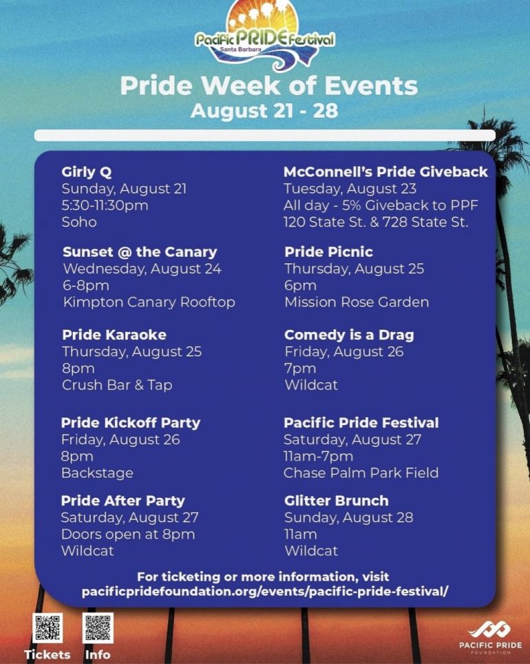 ••• Santa Barbara Pride Week is August 21-28.