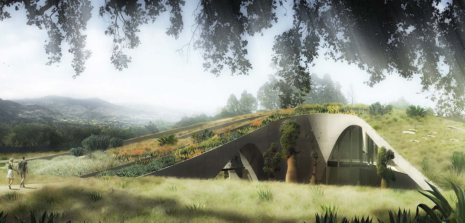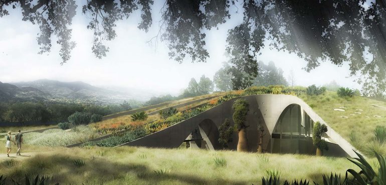The house sits at the top of a ridgeline with expansive views south to the Pacific Ocean, north to the Santa Ynez mountains, and west to Santa Barbara Harbor. To maximize these views without creating a visual disturbance, the house is conceived as an extension of the ridge top. The entirety of the house occurs underneath a continuous Green Roof garden that seamlessly blends with the site. […]