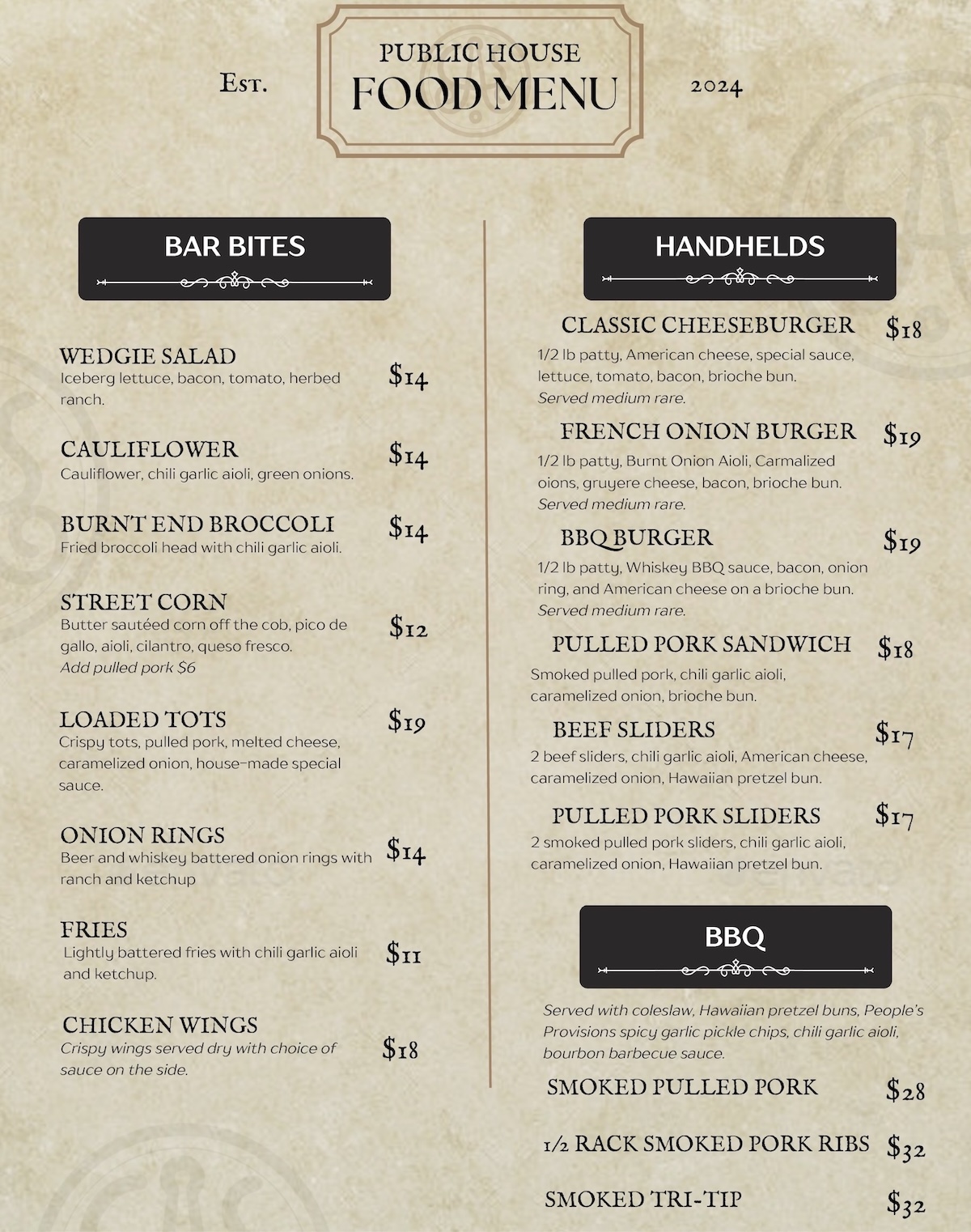 I didn’t see your Happy Hour Cocktail/Food menu?? Please carry on the old Beachside tradition, and we can go back to get those weekly weekend apps and incredible cocktails! Fish Tacos were a WINNER!! Sliders could be an option, $20/ 1/2 lb burger will never go over well where the sliders would! Make them “Your own”! Possibilities are endless, but we went every Sunday and the bar area was packed with old and young, UCSB people, etc.