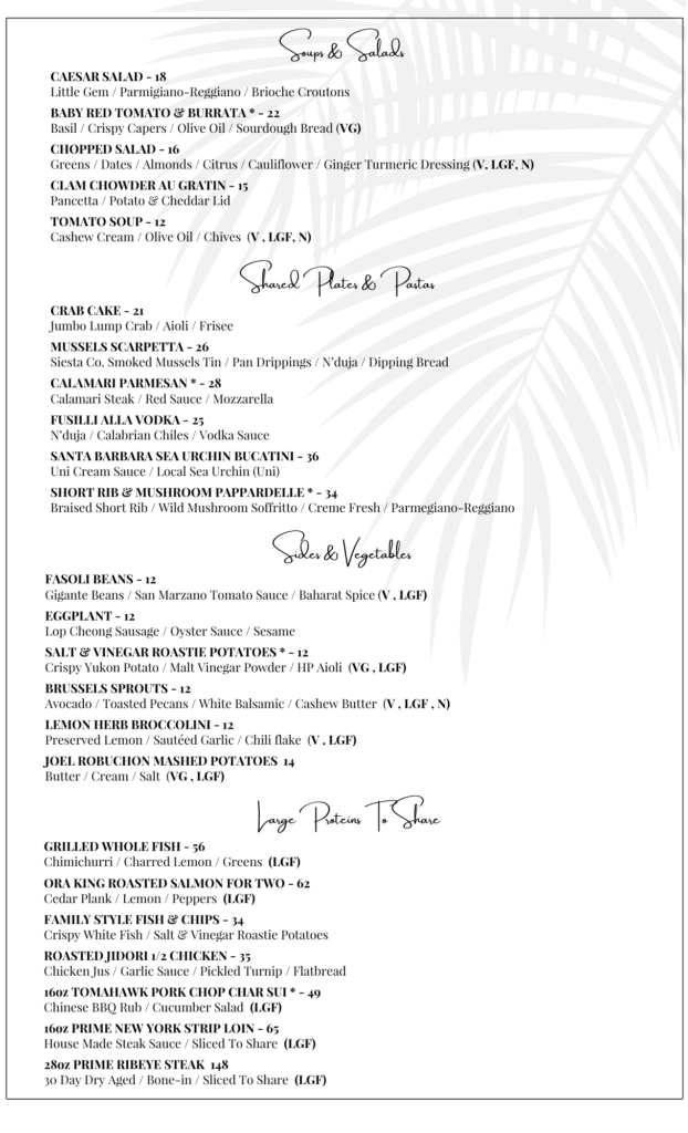 I think you can tell from just these initial comments that old school Goleta is not looking for “elevated” dining. We are all missing the Beachside and the Sundowner specials and the great, affordable seafood dinners we all enjoyed with our families for years. Unfortunately this menu you’ve presented won’t work for this community. Please consider a menu that’s more reasonable and accessible for this community. Everyone misses the Beachside so take that as a hint.