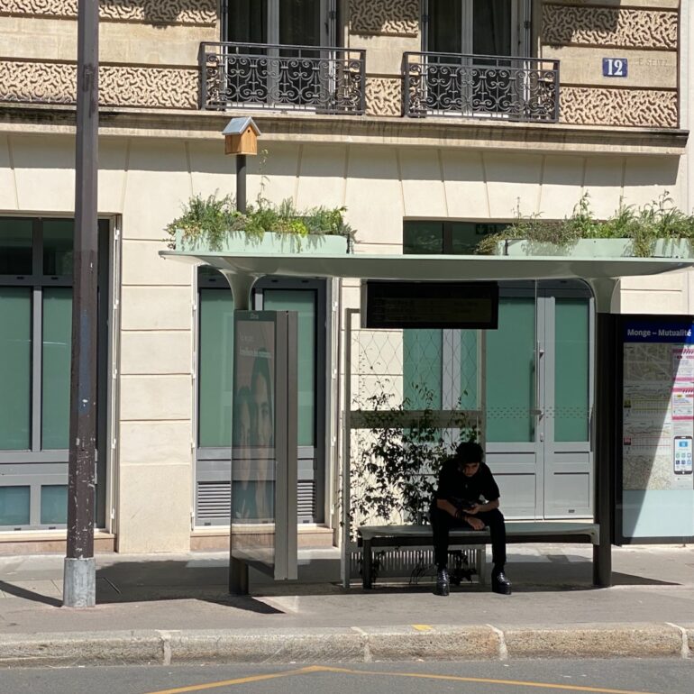I was captivated by the mirrored cladding that hides scaffolding and charmed by the birdhouse atop a bus stop.