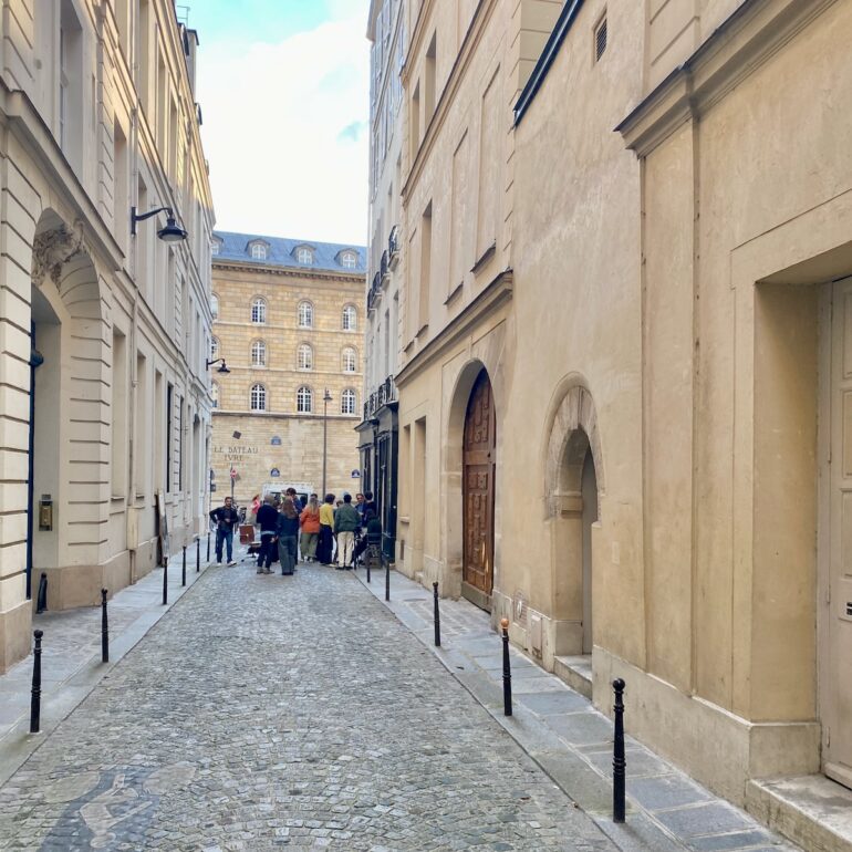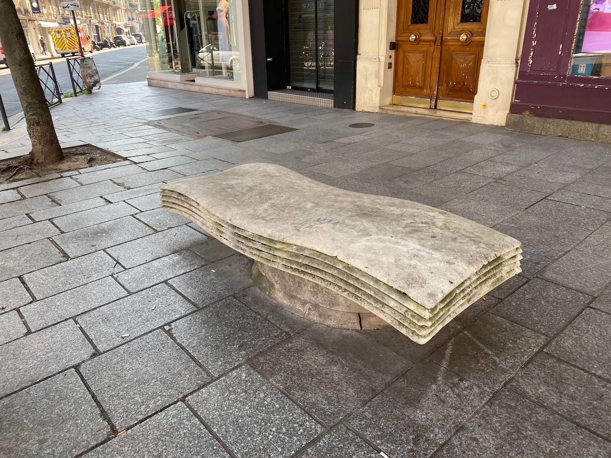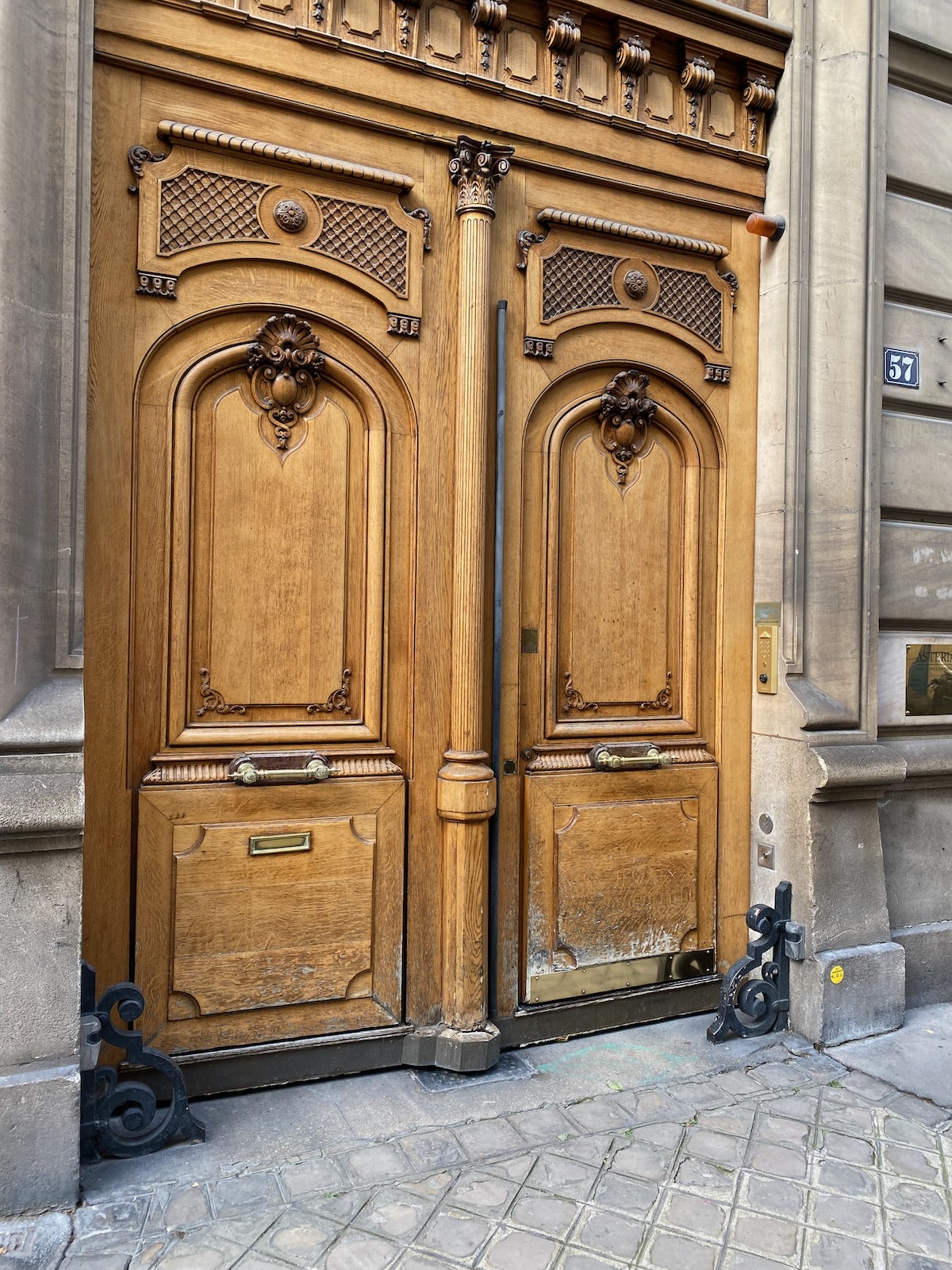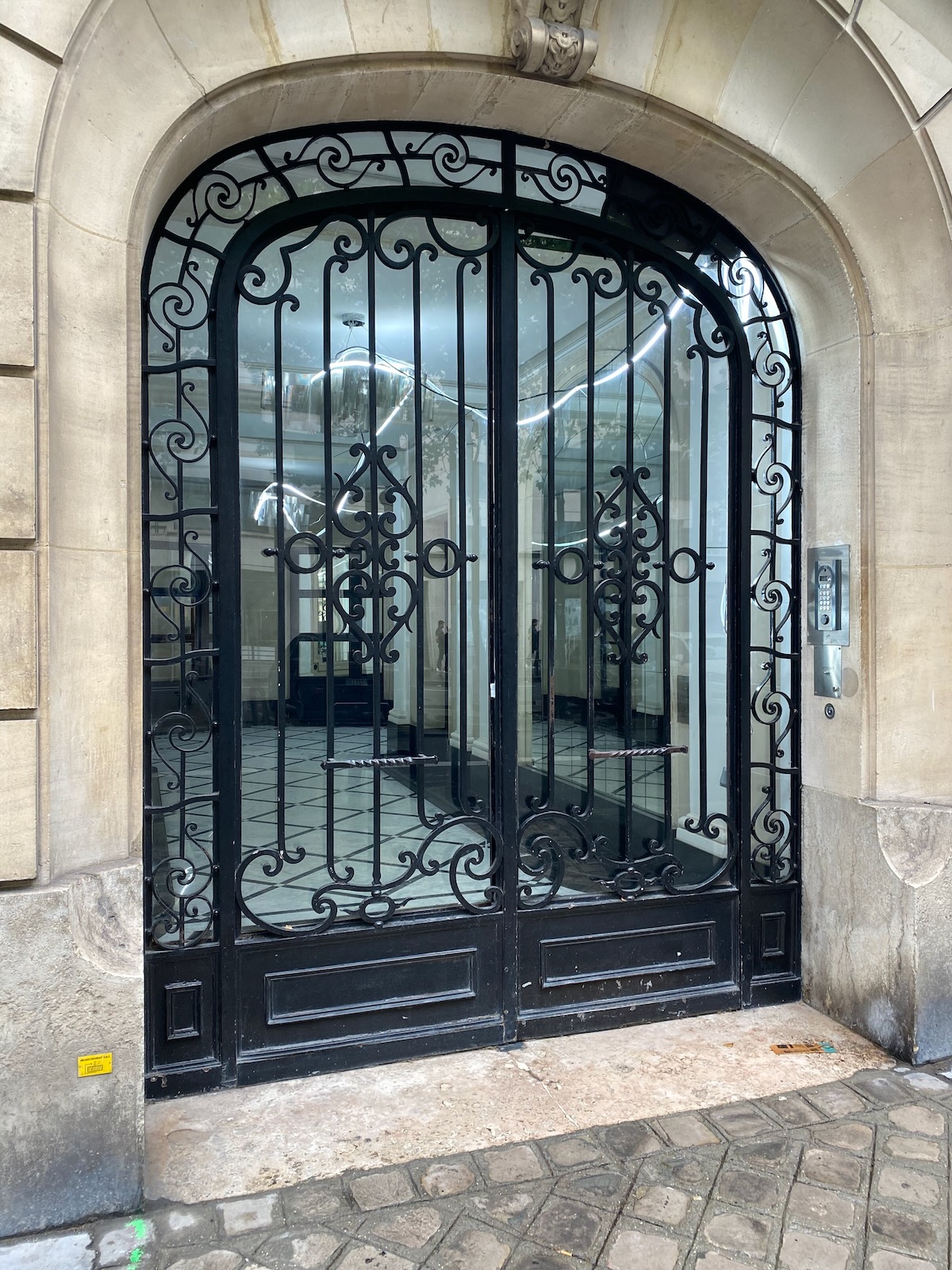 If I had been able to visit the showroom, I might have found out what these things on the ground are for. Our best guess: to stop cars from damaging the sides. (The doors tend to lead to large courtyards. Every now and then they would be open, and I couldn’t resist looking in. Do Parisians pride themselves on not doing so, the way New Yorkers claim they don’t look up, lest they be mistaken for tourists?)