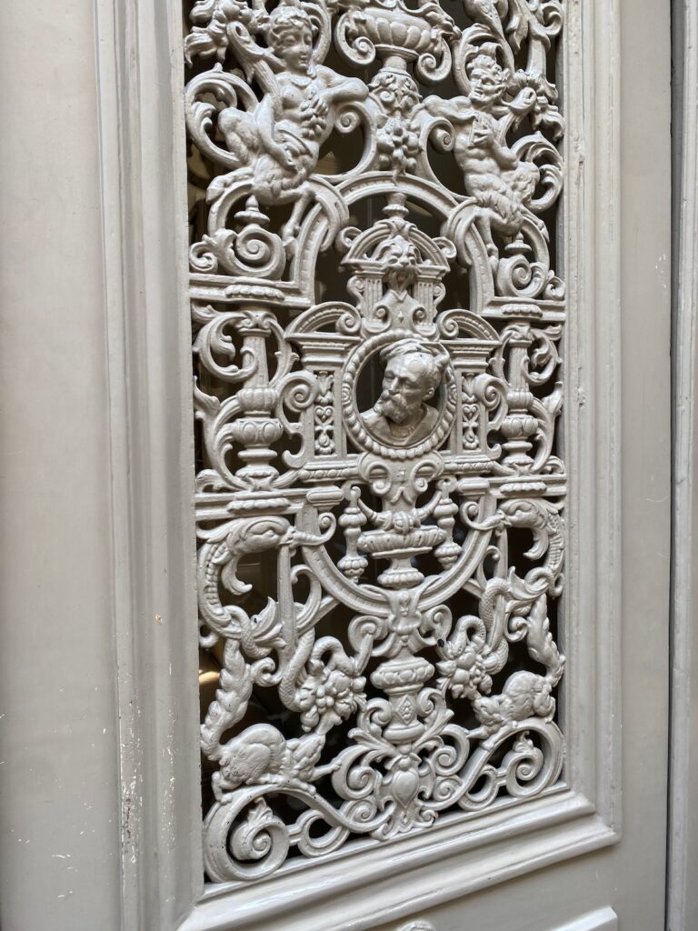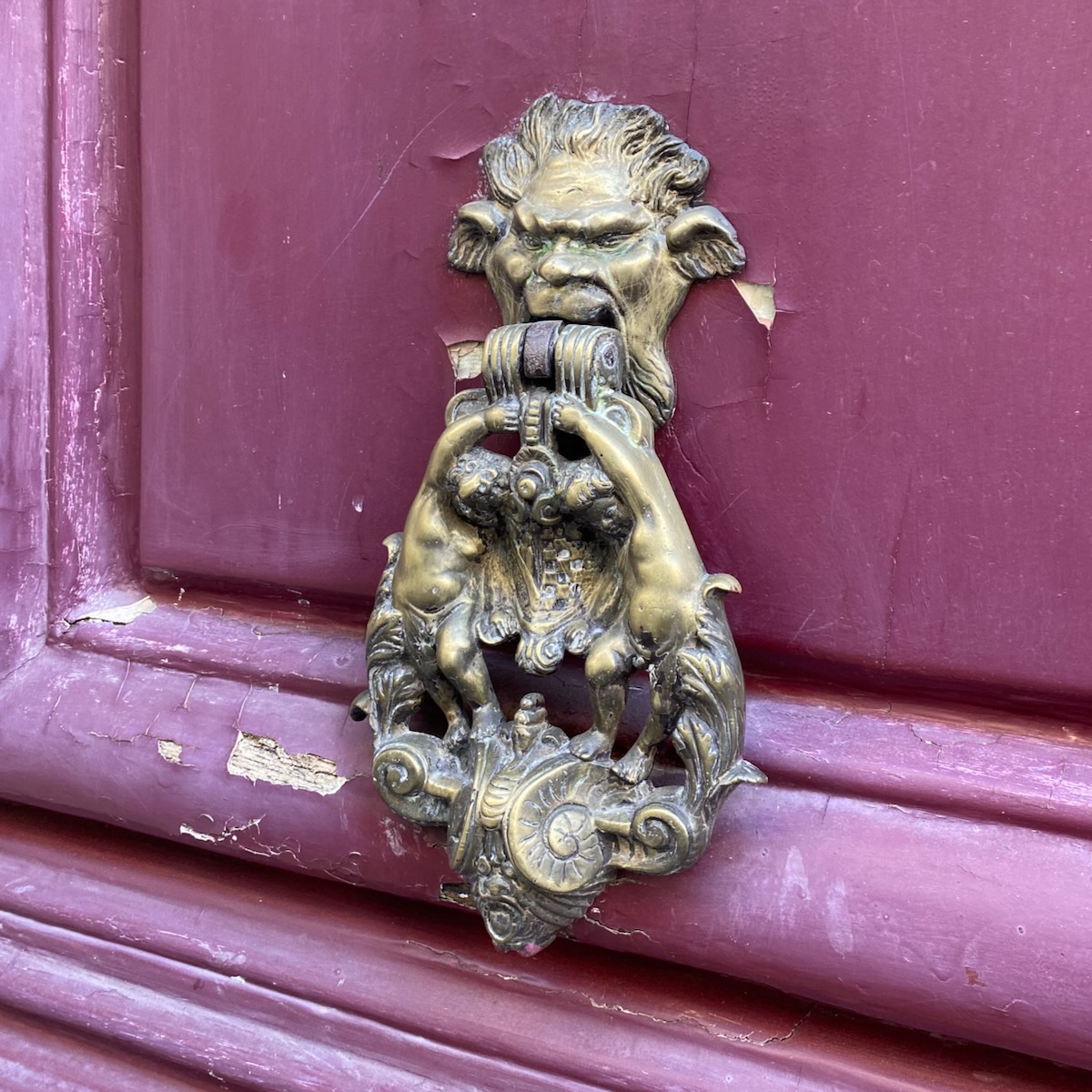 I was so obsessed with the decorative hardware on doors that I emailed the Fontaine showroom to see if I could come by, even though it’s only open to the trade. They said no, in part because it was closed for renovations. Next time, I’m getting an interior designer to vouch for me. We’re actually in the market for a door knocker, and I don’t care if our house isn’t grand enough to justify something rococo.