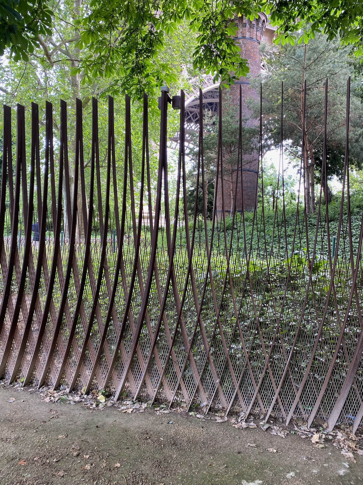 The beauty extends beyond the buildings and the door hardware. Notice how the fence around the Eiffel Tower mimics the shape of the tower. And that bench! Even the way the LED construction lighting has a certain flair—I kept thinking I was looking at an art installation.