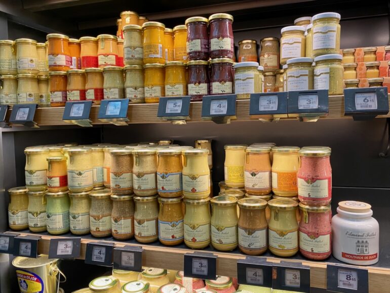 And we loved La Grande Épicerie at Le Bon Marché. The entire department store is a treat—civilized and nice, the way department stores here used to be. But the food hall is next-level, with an emphasis on products more than prepared food (although there’s that, too). As I mentioned, we didn’t cook in the apartment, but we did have breakfast there, and buying little pots of yogurt is a lot more fun when the flavors are citron, myrtille, cerise, and fraises…. And Edmond Fallot mustards came in so many tantalizing flavors…. And why didn’t I buy a tube of salted caramel when I had the chance?