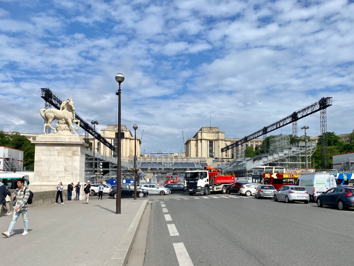 As you are probably aware, the Olympics will be held in Paris later this month. It was fascinating to see how the city is erecting temporary stadiums everywhere—the Place de la Concorde, for example, and in the shadow of the Eiffel Tower—rather than build them out in les boonies. The preparations didn’t prove to be a hassle, except for occasionally forcing us to walk in the street in order to circumvent something.