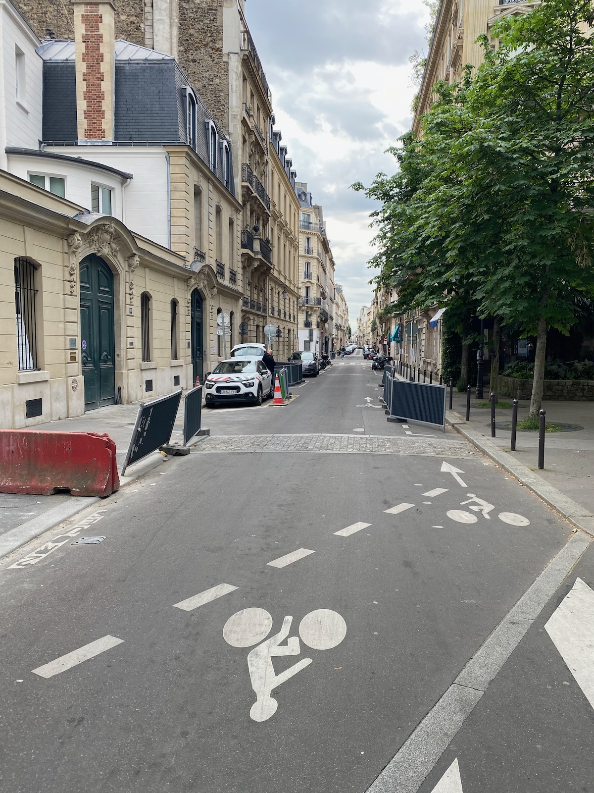 Two pieces of advice for anyone planning on walking in Paris: pay attention to where you’re stepping, because the sidewalks are in shoddy condition, and look both ways before crossing any street—bike lanes generally, but not always, go the opposite direction of car traffic, and buses occasionally do.