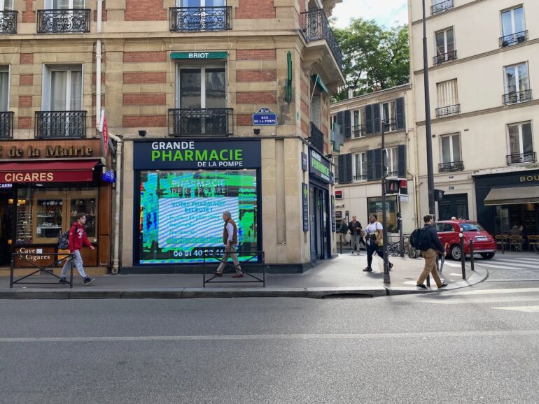 But thank goodness our pharmacies haven’t given over their windows to giant electronic ads.