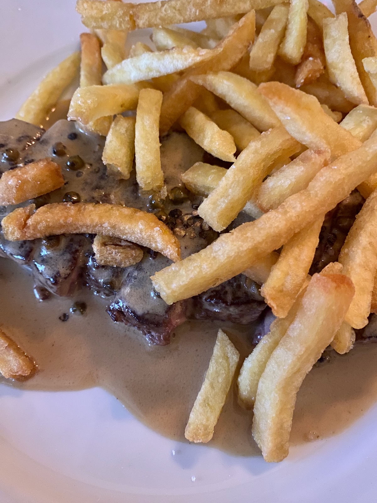 …and La Bourse et la Vie, home to a perfect steak au poivre with frites…