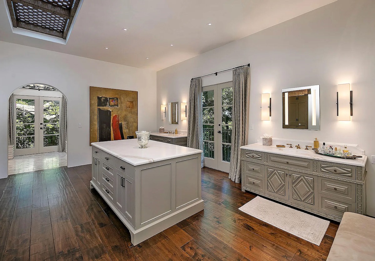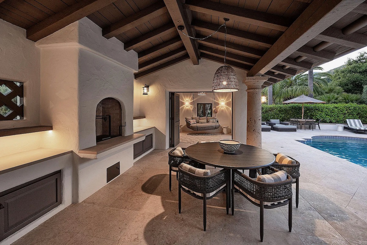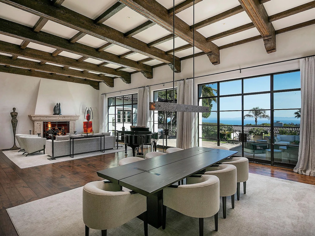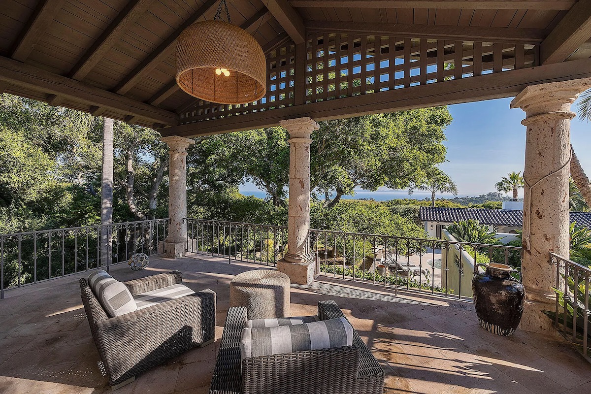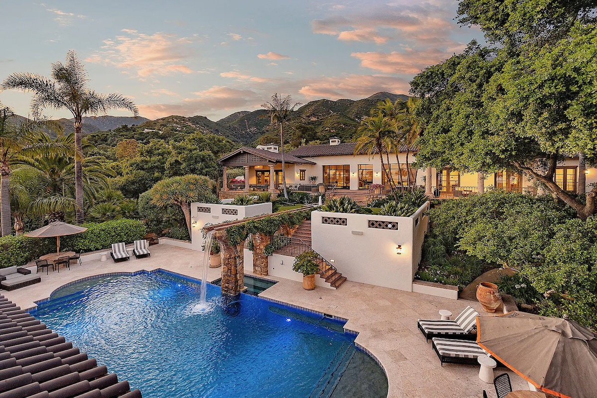 The seller of 1260 E. Mountain Drive ($25.5 million) paid $14.725 million in late 2020 and freshened up the 13,231-square-foot house to appealing effect, including painting the exterior white, combining the kitchen and dining room, and adding an elevator. The main level is dreamy, with large rooms and ocean views. The only room upstairs is a study. Downstairs, meanwhile, you’ll find a rec room, home theater (complete with concession counter), gym, and wine room. That’s a lot to offer, for sure, but a utilitarian storage area gums up the flow and the lower level doesn’t have the same elegance as the rest of the house. The pool is also downstairs, with an indoor/outdoor cabana and a striking aqueduct-style fountain that cascades into the pool. (The kid in me would be tempted to use it as a diving board.) P.S. The property is just off the Hot Springs Trailhead, which cuts both ways.