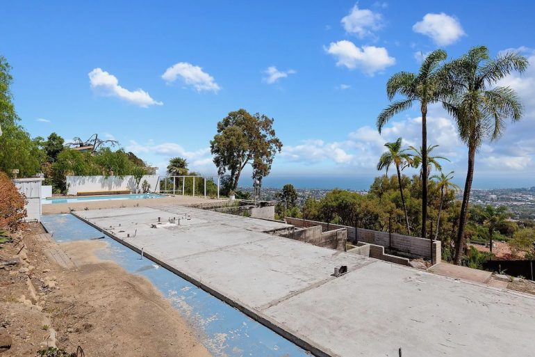 Not long after Richard Neutra‘s 1956 Slavin House at 1322 Dover Road was essentially destroyed by fire in 2021, the property was bought by someone who vowed to rebuild it. Then, in March 2022, the .82-acre lot was put on the market for $10 million—whether the price included the completed house was unclear. Now it’s back for $3.297 million and, according to the listing, “a new design by local firm Flynn Architects has adapted and expanded the original Neutra concept, bringing the 1950s midcentury design into the modern era.”