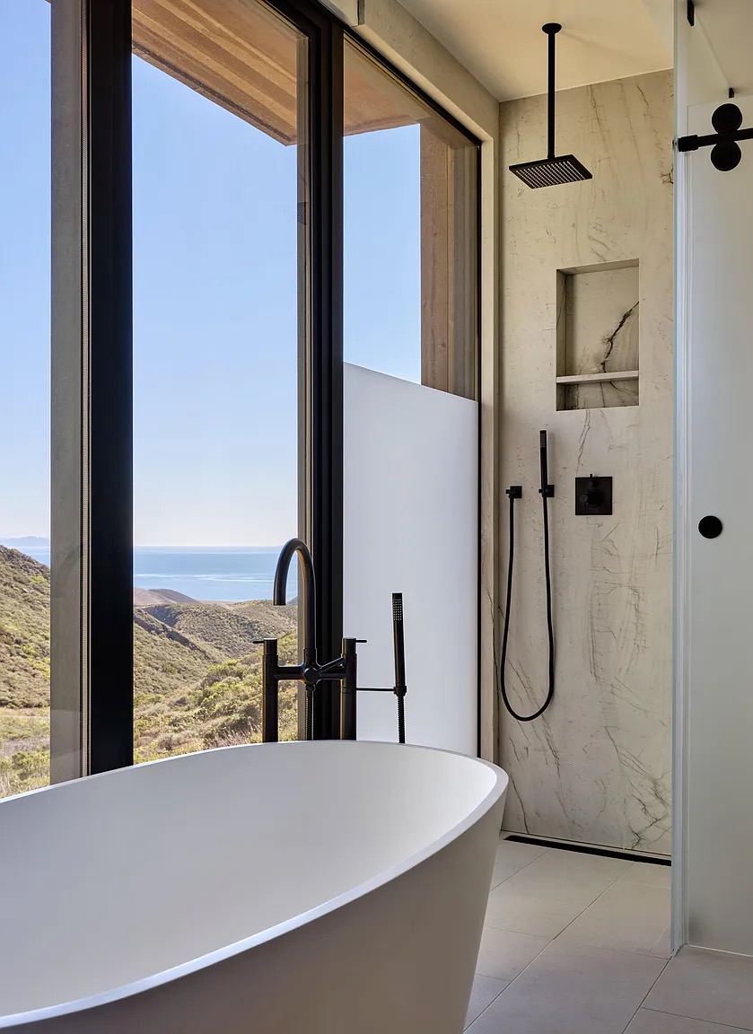 Newly constructed 82 Hollister Ranch Road ($6.495 million) has midcentury-inspired architecture; cool, contemporary interiors; and a secluded location on the 112-acre lot. (The property is a 25 percent partnership.) The frosted glass in the shower is kind of a bummer—Hollister Ranch is the kind of place where peepers shouldn’t be a concern.