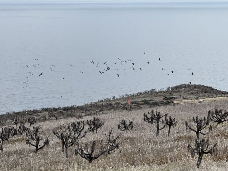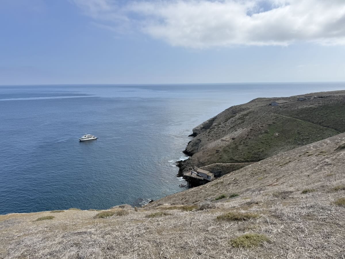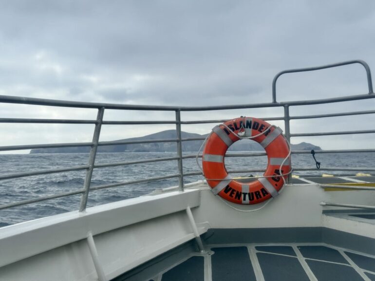 The day started like any other visit to the archipelago, with our group lining up at Ventura Harbor around 8 a.m. Santa Barbara Island is about sixty miles south of Ventura Harbor, and the journey took three hours (a big longer than if we had been on one of the fleet’s catamarans). It was an uneventful crossing, with a sole wildlife stop to view seabirds, sea lions, and dolphins engaging in a feeding frenzy over a bait ball. Finally, the island appeared on the horizon.