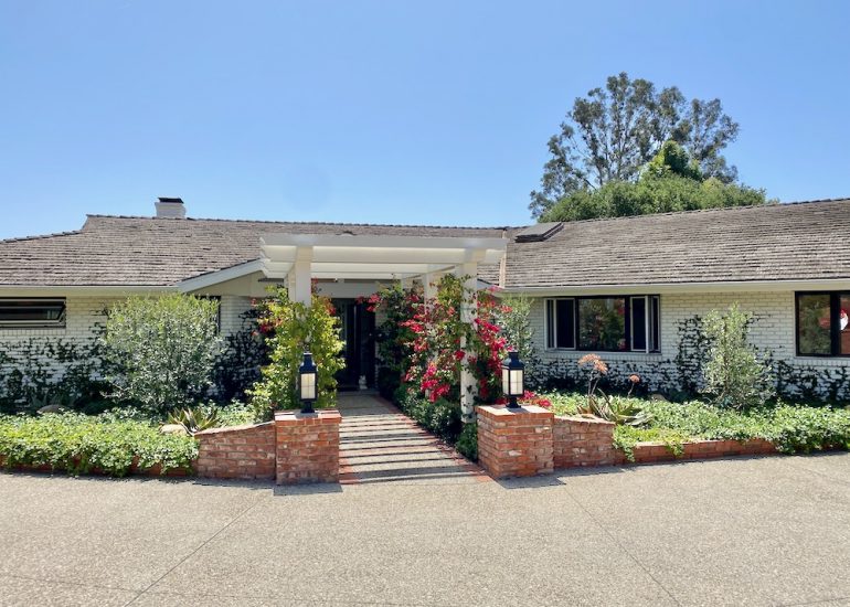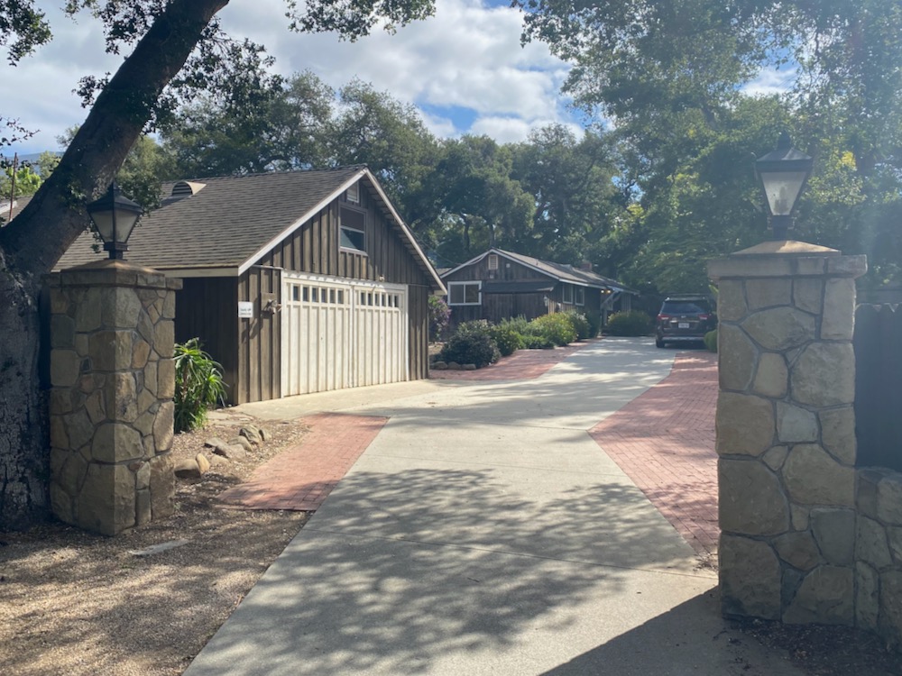 Four-acre lot above Cathedral Oaks Road with a four-bedroom main house and a three-bedroom guest house.