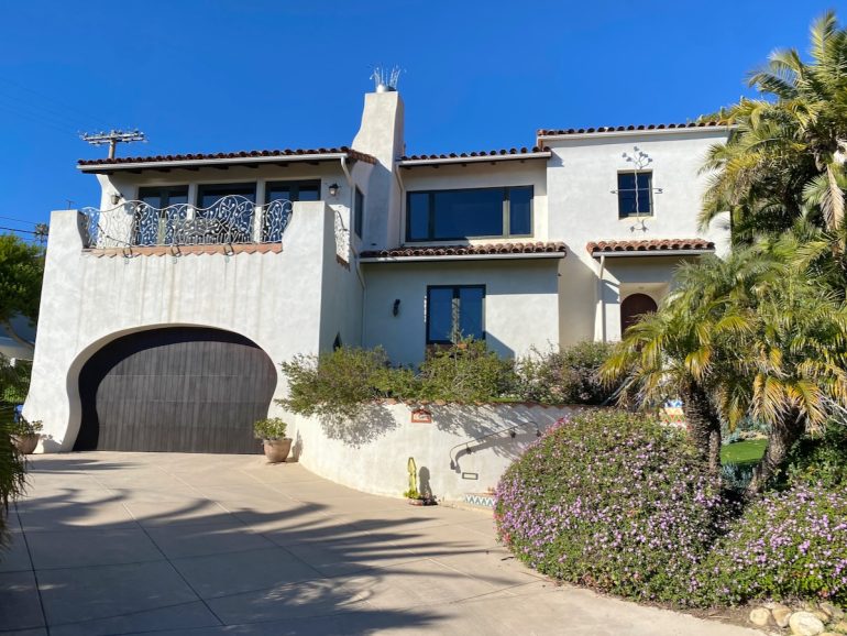 And a few have been updated (or are in the process) in interesting ways. The views from the glass-walled room atop the first house below must be extraordinary. And the garage at the second one used to have a tall, arched door, presumably to accommodate an RV. (UPDATE 3/19: “The house on La Coronilla, with the giant garage, was specially permitted for the owner, who was handicapped, and drove a bus for the city,” explained Heidi. “He got special permission to park the bus at home. We were so so sad to see it converted to a regular garage door opening.”)