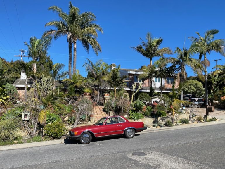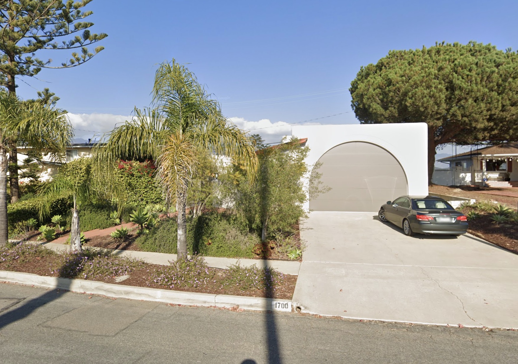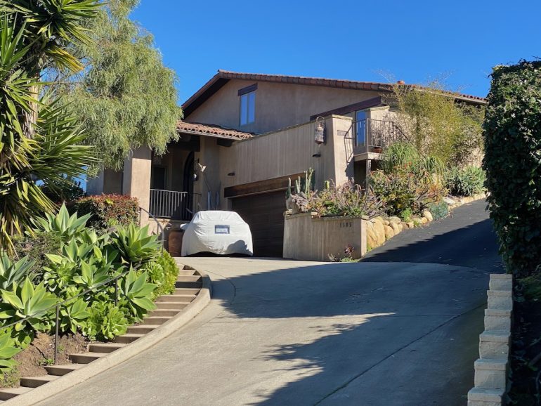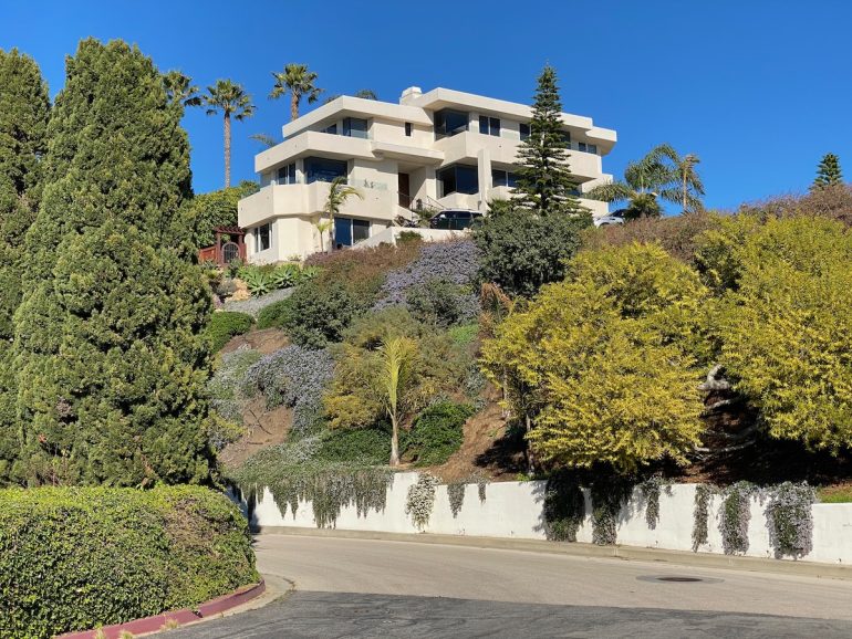 At the end of the street, across the ravine, is the Harbor Hills Drive house I told you to bookmark earlier. The land sold in 2017, and the owner appears to have built the plans that came with it. Very cool!