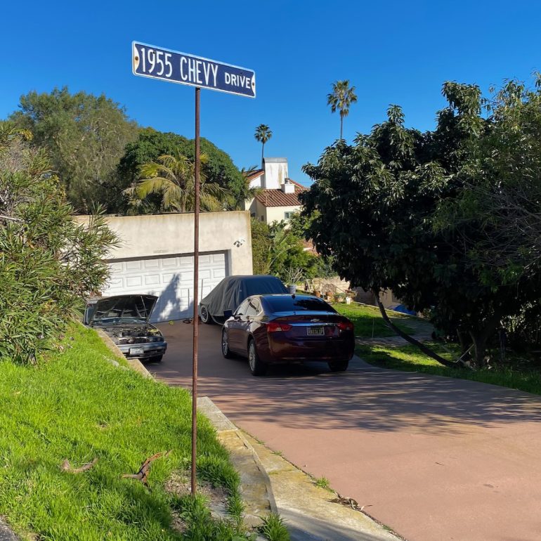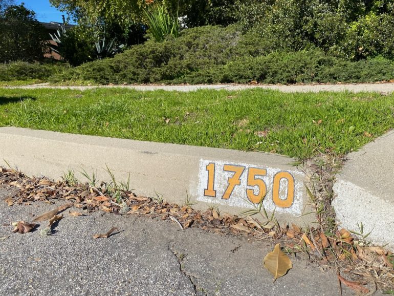 The owner of 1750 La Coronilla has an antique Ford (with a license plate frame that says “Less is bore”) and a pimped-up mailbox. I like how the street number has been customized, too.