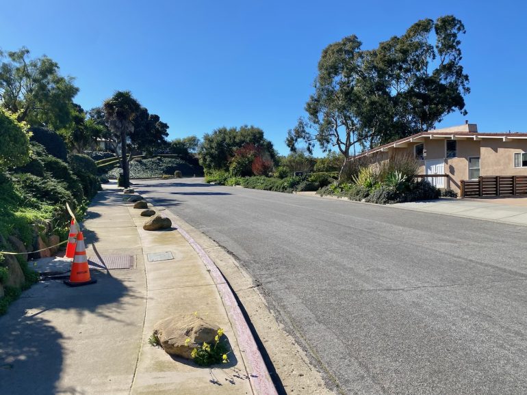 The pavement is different on the north and south parts of La Vista del Oceano, which made me wonder whether the city rep was wrong, and the north side is indeed private. If so, I’m sure I’ll hear about it.