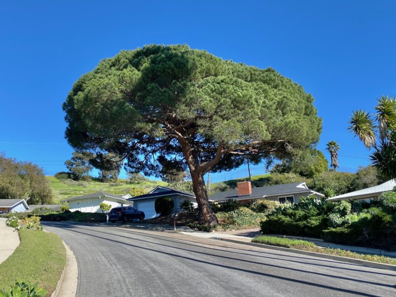 The owner of this tree on La Cresta Circle festooned it with small disco balls that cast vibrating specks of light all over. I should have attempted a video.
