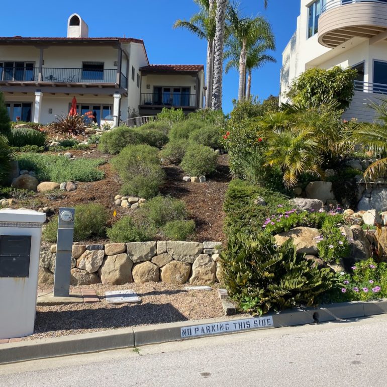 This part of town has three main sections, at least in regard to how I walked it. First was the upper area, mainly La Coronilla Drive and Harbor Hills Drive. Judging from the signs, people must come through in a hurry—perhaps the idea is that they’ll slow down to admire the cuteness.