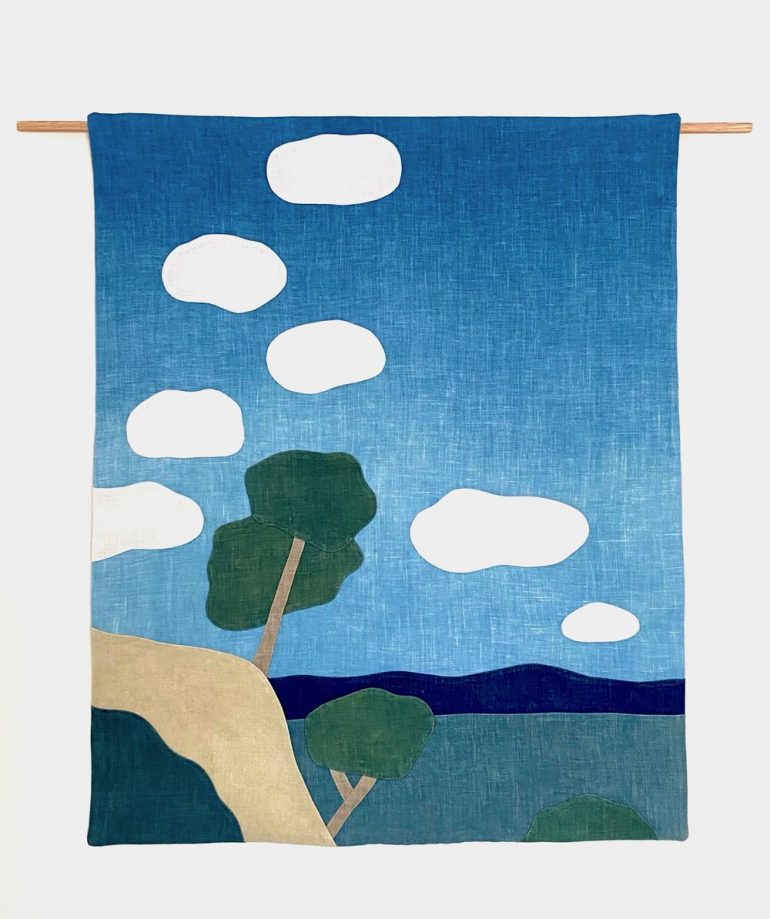 ••• A profile of “G and Ry Roslie’s Slo Curio Studio + Gallery, a cool new art studio in a funky live/work neighborhood on Santa Barbara’s Eastside. G is a Korean American artist/maker who uses naturally dyed textiles to create abstract modern pieces that reflect the world around us. Ry is an assemblage artist who uses primarily recycled materials to create functional light fixtures that are true works of art.” Right: G’s “View from Mesa Lane.” —Independent