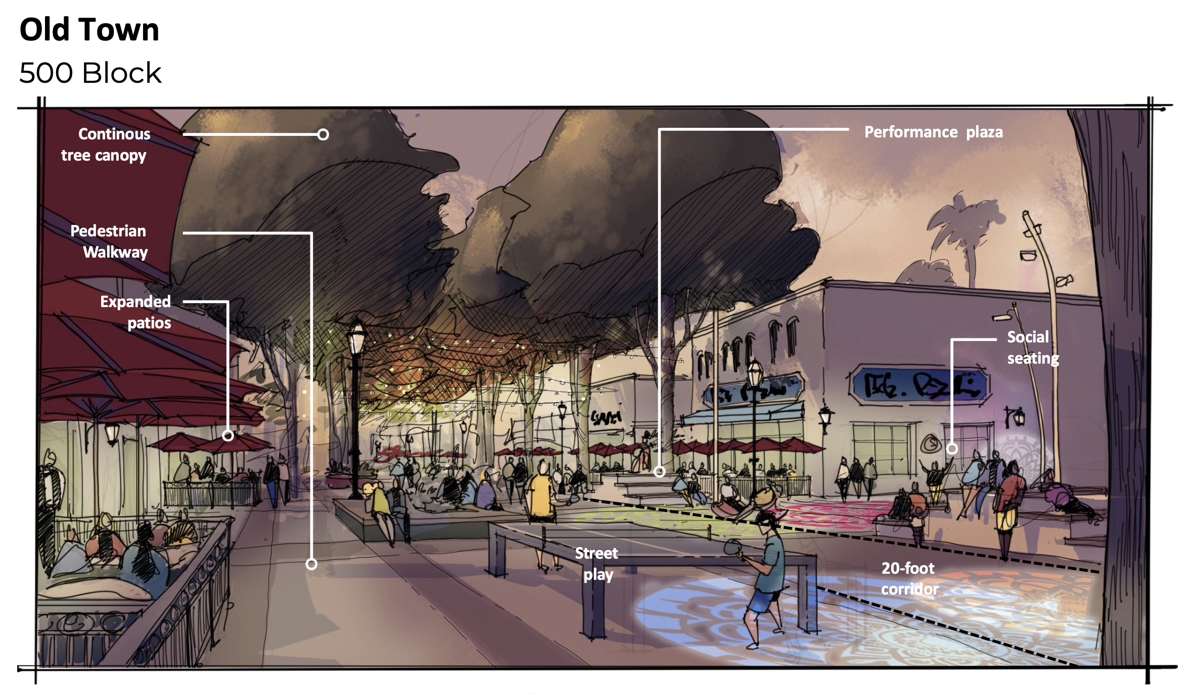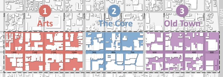 Counterintuitively, the presentation started with district #3, Old Town—which is not the Presidio, or even Presidio-adjacent, but the nightlife-centric blocks between Highway 101 and Ortega Street.