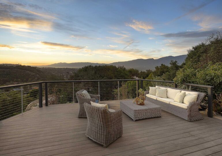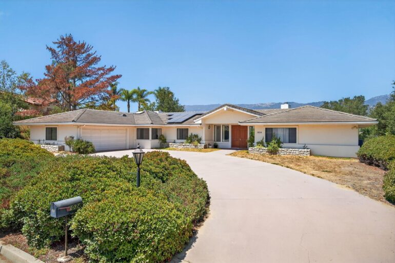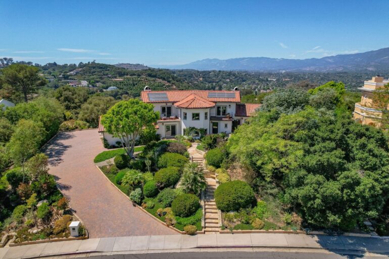 On the north side of TV Hill, with an apartment complex and hospice house as neighbors, 860 Miramonte Drive ($4.17 million) is a 1980s Mediterranean with mountain views, three bedrooms, wood floors, a nice kitchen, and bathrooms that don’t jibe with the rest of the interiors.