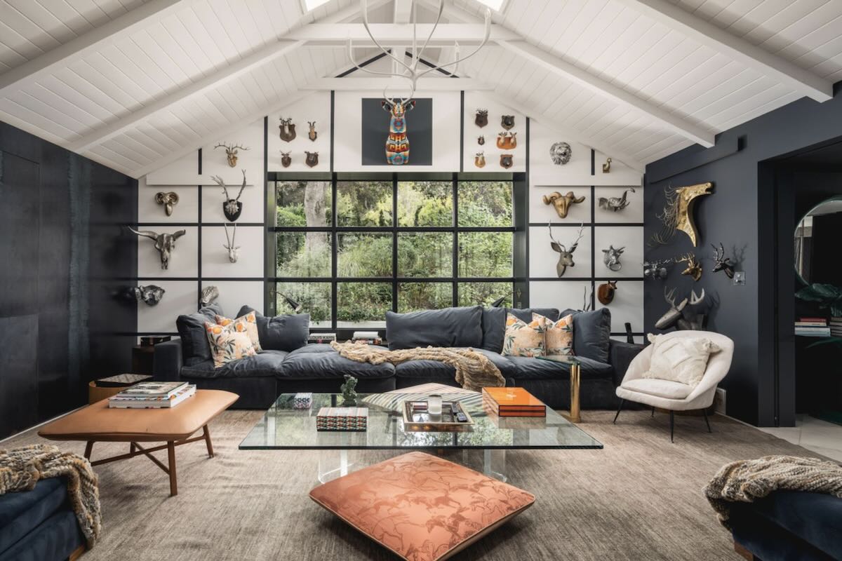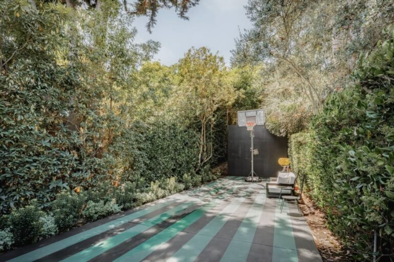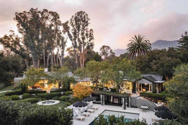 I wish we had before shots of 1381 East Valley Road ($13.8 million) from when it last sold in 2013, because the after is wild—no surface left unzhushed, and many painted black. (Even the sport court got striped.) The main house and “Parisian-inspired guest villa” each have three bedrooms. (Update: Before shots.)