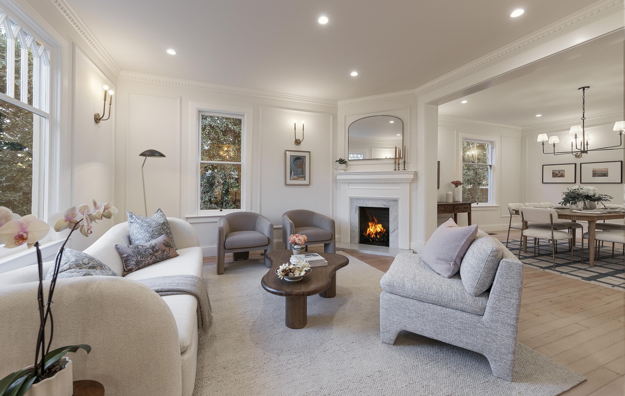 The 1902 Queen Anne at 1609 Garden Street ($3.775 million), between Arrellaga and Valerio and just above Alice Keck Park Memorial Garden, was purchased in October 2024 for just under $2 million and given a fresh start. A little color, inside or out, and fewer/better LEDs would go a long way, but that’s easy enough. P.S. The attic room could be a handy place to stash a toddler or two.