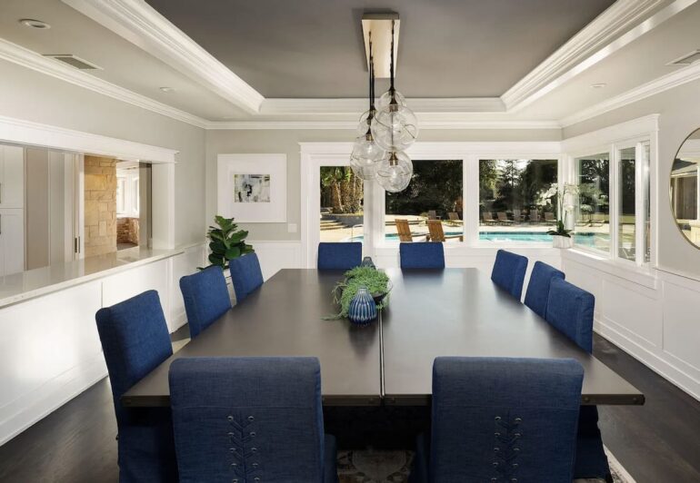 For under $4 million in the Hedgerow, you’re going to have to make some sacrifices—in the case of 1863 San Leandro Lane ($3.995 million), that means a location on what passes for a busy corner in the neighborhood and a kitchen that wouldn’t be out of place in an ADU. The 1962 house has been improved with some large windows, and while the main-level guest room would be better if it were en suite, there is a downstairs guest room for anyone seeking privacy.