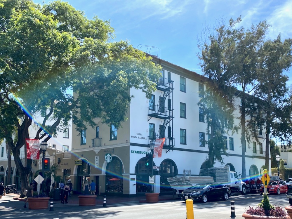 ••• Hotel Santa Barbara has been a new color scheme, and it’s definitely an improvement. (I assume the front is next.) Here’s hoping the makeover continues inside.